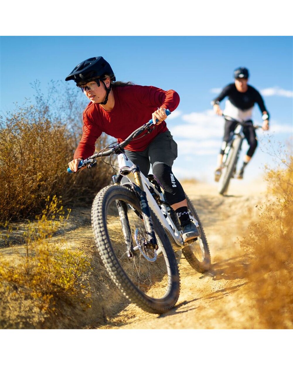Protect yourself and the planet. The progressive brand G-Form launches the first biodegradable protector collection thanks to its own RE ZRO insert. The average plastic bottle takes 450 to 500 years to decompose - our protector decomposes in 3 to 5 years! But the entire decomposition process will only begin at the landfill, where ideal conditions are rich in microbes and low in oxygen. It will provide you with a high degree of comfort, very low weight, unrivaled ventilation and, thanks to the great flexibility of the protector, trouble-free pedaling. The biodegradable, ergonomically shaped RE ZRO insert is hidden in a ventilated, internally padded pocket from which the protector can be removed, rinsed and washed separately like our other protectors. The mesh back part of the sleeve provides excellent ventilation and eliminates material creasing. On the other hand, there is a mechanically resistant layer on the front side for a longer life of the protector. The upper flared hem of the sleeve is equipped with silicone strips to keep it in place throughout the downhill ride.