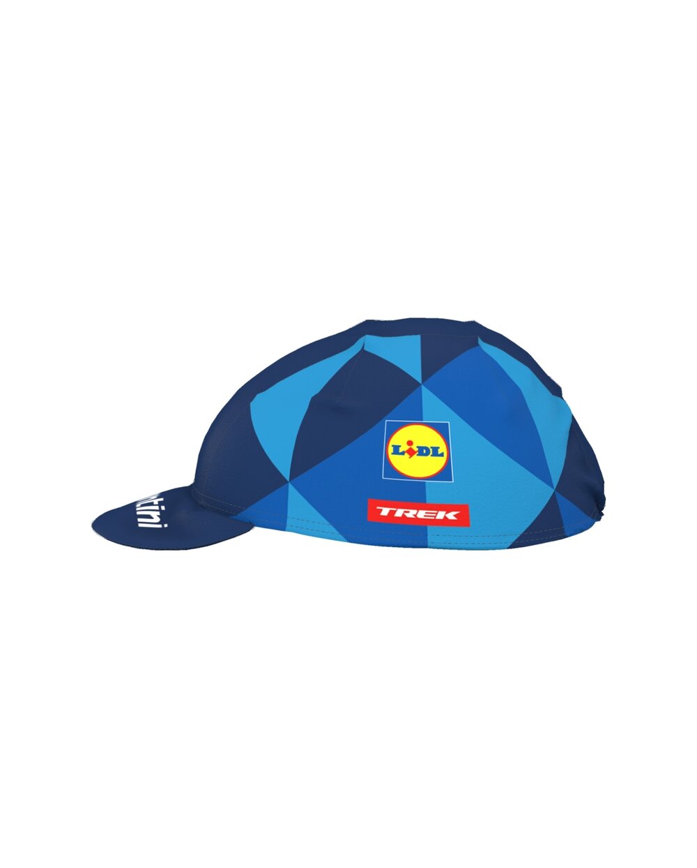 Lidl-Trek team cap, made from soft and fresh cotton, perfect for tackling the hottest days. Designed to offer sun protection during summer rides, this cap is lightweight and comfortable, ensuring breathability and freshness. Ideal for wearing under a helmet or during breaks.