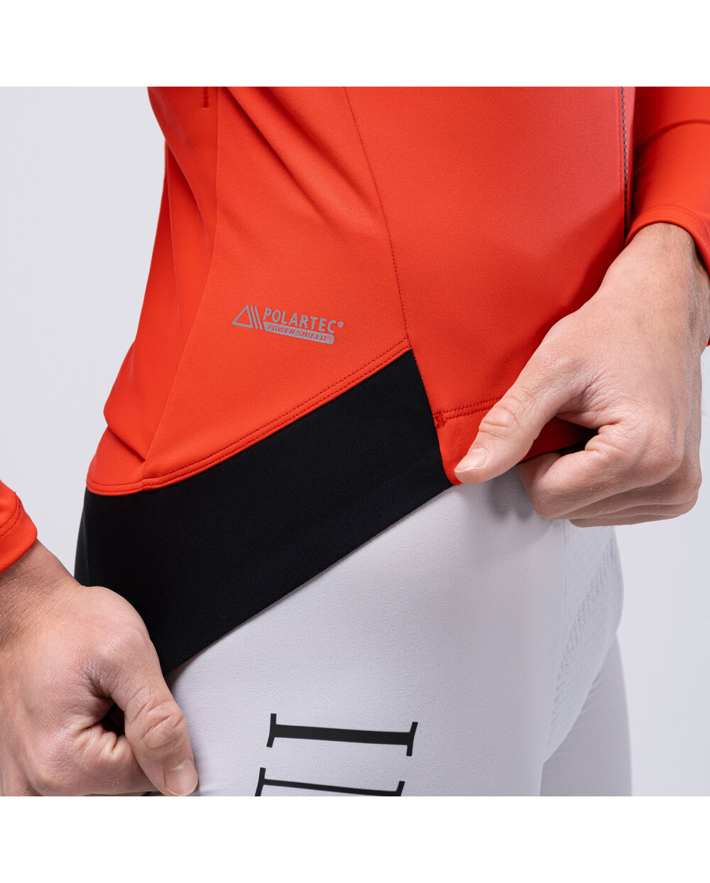 Experience maximum protection against the elements and exemplary aerodynamics with this high-performance jacket. Its Polartec® Power Shield™ Pro insulating technology, featuring a breathable, windproof, and waterproof membrane of plant origin and PFAS-free, uses molecular diffusion to expel water vapor without compromising the barrier against raindrops. Thanks to its highly aerodynamic design, it fits the body like a second skin, maximizing efficiency in motion. Its optimized structure minimizes internal volume, making it ideal for wearing with light and fitted layers. Perfect for those seeking the balance between performance and protection in variable conditions. Polartec® Power Shield™ Pro membrane. Sealed seams in the shoulder area. YKK Vislon® AquaGuard® zipper. Rear pockets with water evacuation system. Elastic waistband with non-slip silicone band. Neoprene rear flap. Reflective details.