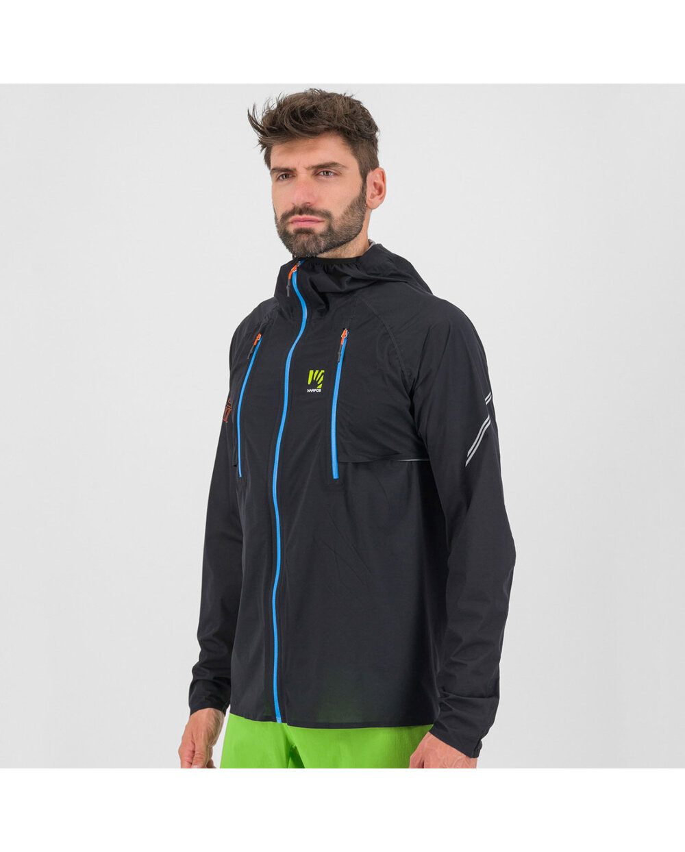 Top running jacket that every runner should have in their backpack, in every season and under any conditions. Running jacket The Karpos Lavaredo Rain was designed to provide comfort and performance even in adverse weather. On its development and improvement, Karpos collaborated with the world record holder in trail running Franco Coll. The result of this collaboration is an extremely light, wind and waterproof and maximally breathable jacket that can be easily and quickly packed into a running backpack. Two front chest zips provide easy access to water bottles and backpack pockets. Ventilation is ensured by the perforated part on the back and in the armpit. The jacket is made of elastic fabric, which allows wearing a backpack under the jacket and does not restrict movement.