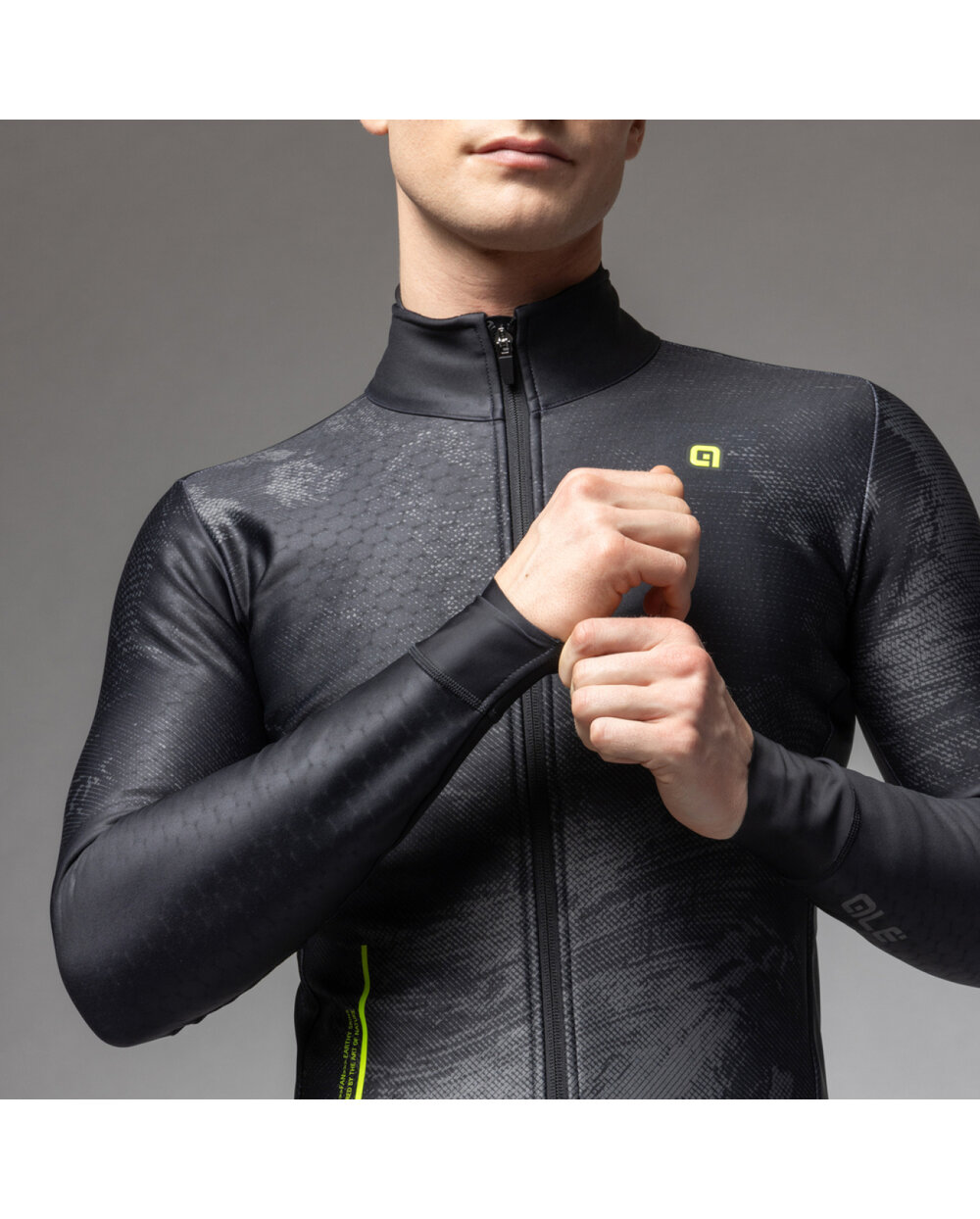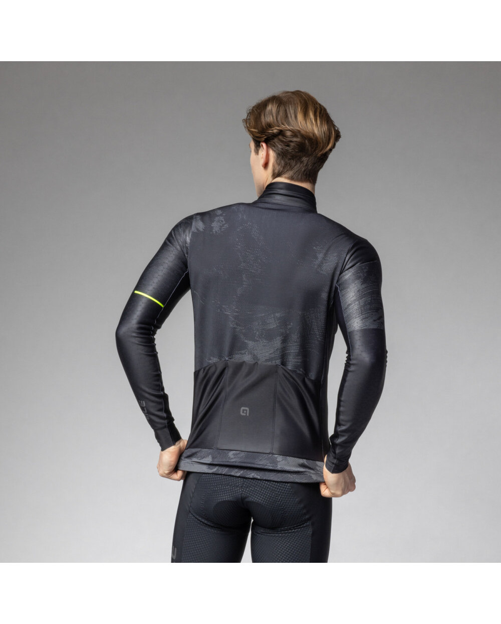 Winter jacket, designed for riding even in really cold, wet or windy weather. Thanks to the Event® membrane, it is soft, elastic, but at the same time breathable and water-repellent. Strategically placed ventilation zones regulate the heat generated by the body during the ride and maintain a natural microclimate. The original design reflects the modern and technical style of Alé®. Materials: Event 3L Hexagon DWR, Soft Shell Thermo Dry
