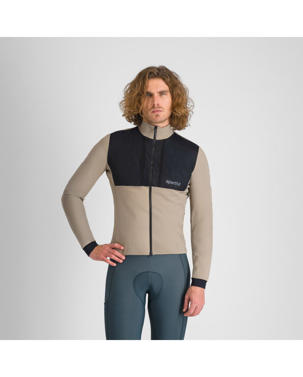 Cycling thermal jacket - beige/black