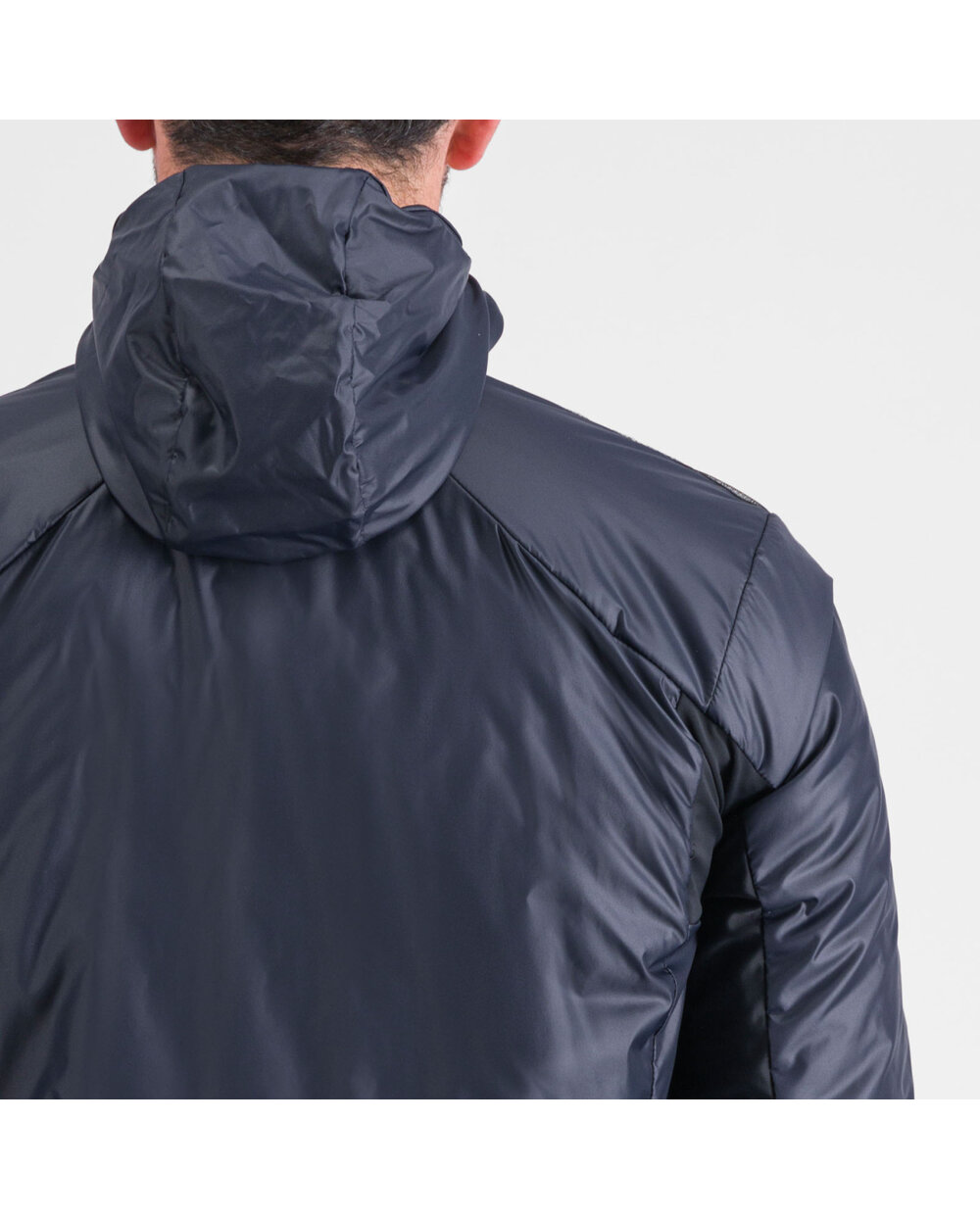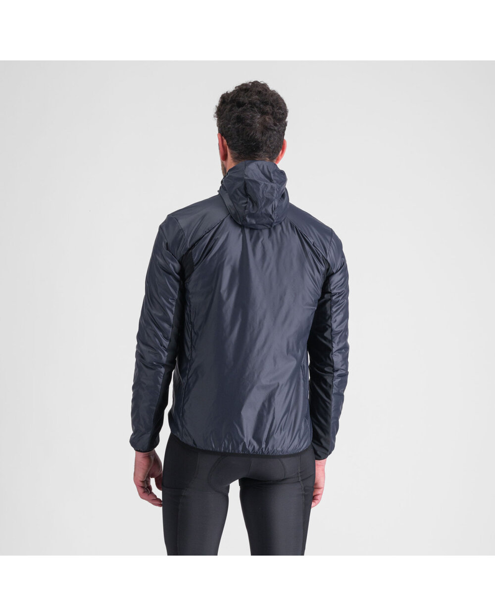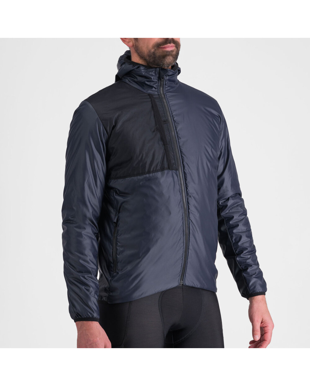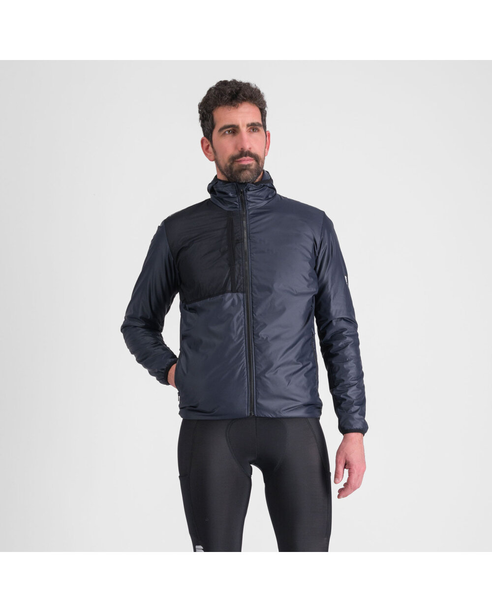 Insulated cycling jacket with hood The Sportful Supergiara Puffy will keep you warm not only during long trips, but also during rest. It is made of a light upper material that has a water-repellent treatment. Thermore synthetic insulation provides excellent heat maintenance and breathability. For complete freedom of movement, there are elastic parts on the sides of the jacket. If necessary, the jacket can be easily folded into the front mesh pocket and stored in a backpack or attached to the handlebars or bicycle frame with the help of elastic straps. Cycling jacket features