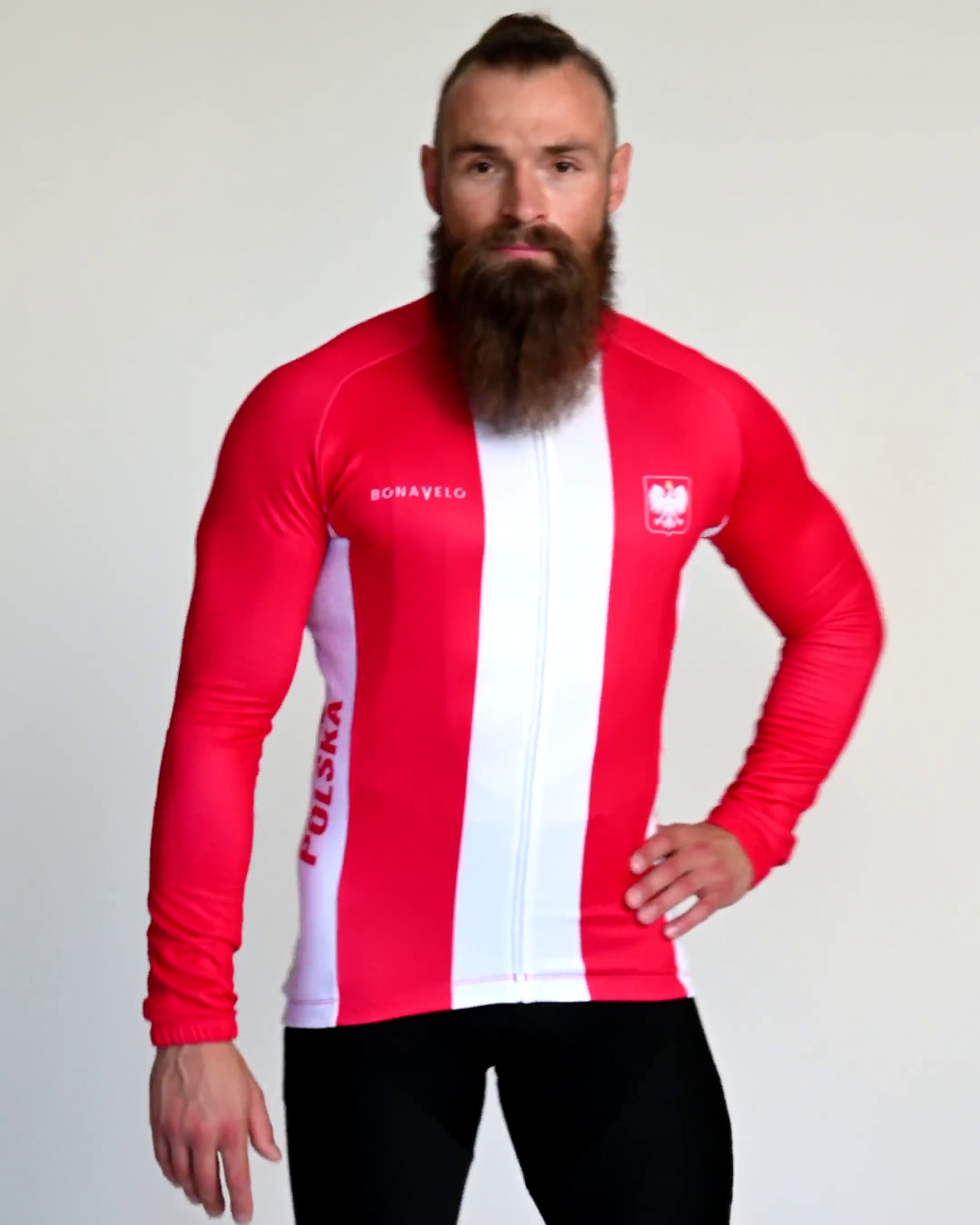 Cycling winter long sleeve jersey Bonavelo POLAND WINTER red/white