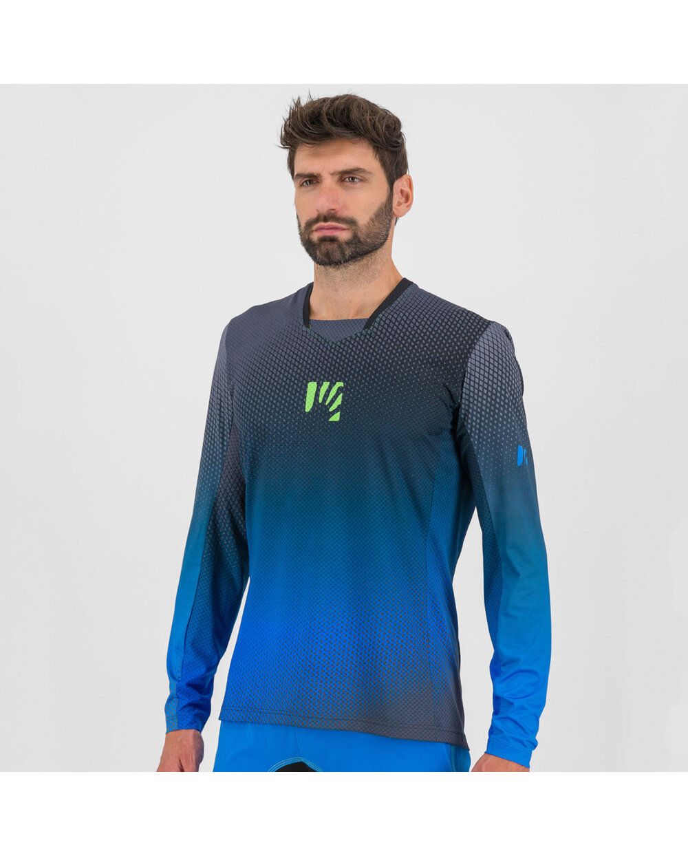 Pánsky MTB jersey with longýsleevesKarpos Val Di Dentro is made from a pair of functionalý materialsá whiché provideú optimumá comfort even on cool&scaron& ´ summerý days. On the handsá thereá is an extremely elasticá material, whichá ensures a snugá fit and freedom of movement. The permeability and wicking of sweat away from the skin is ensured by the perforated material on the front and back.