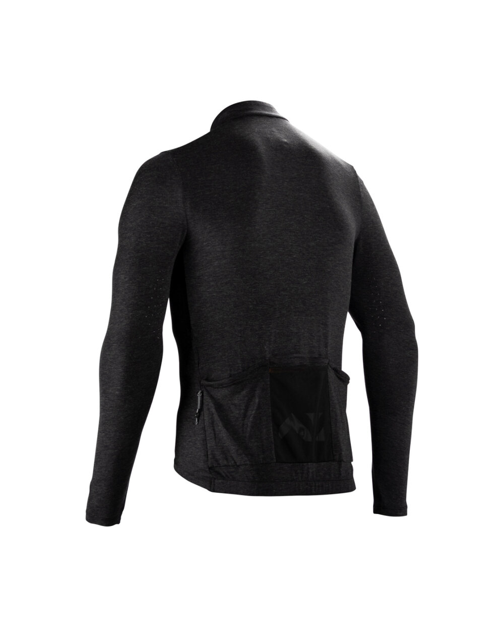 Lightweight merino jersey approved by bluesign® is guaranteed to keep you warm and comfortable. This long sleeve jersey offers the best thermal management within the Leatt jersey portfolio, combining heat retention and breathability in the best possible way. The multi-storage back pockets (4 top opening, 2 zippered) provide ample storage, and the laser-cut details to reduce seams offer maximum riding comfort. From the design to the logo branding, this high-performance kit is sleek and understated.
