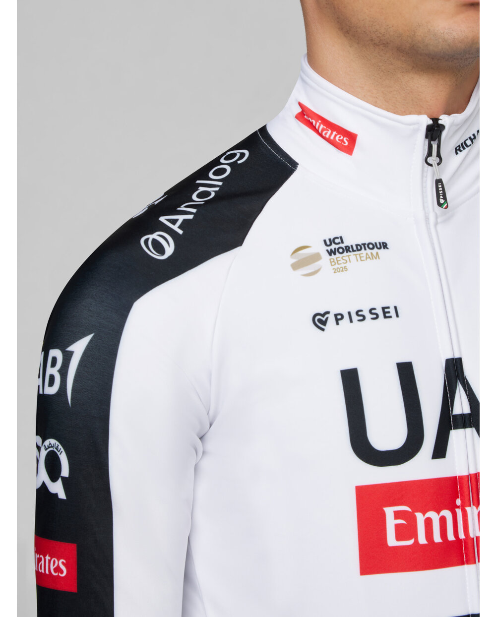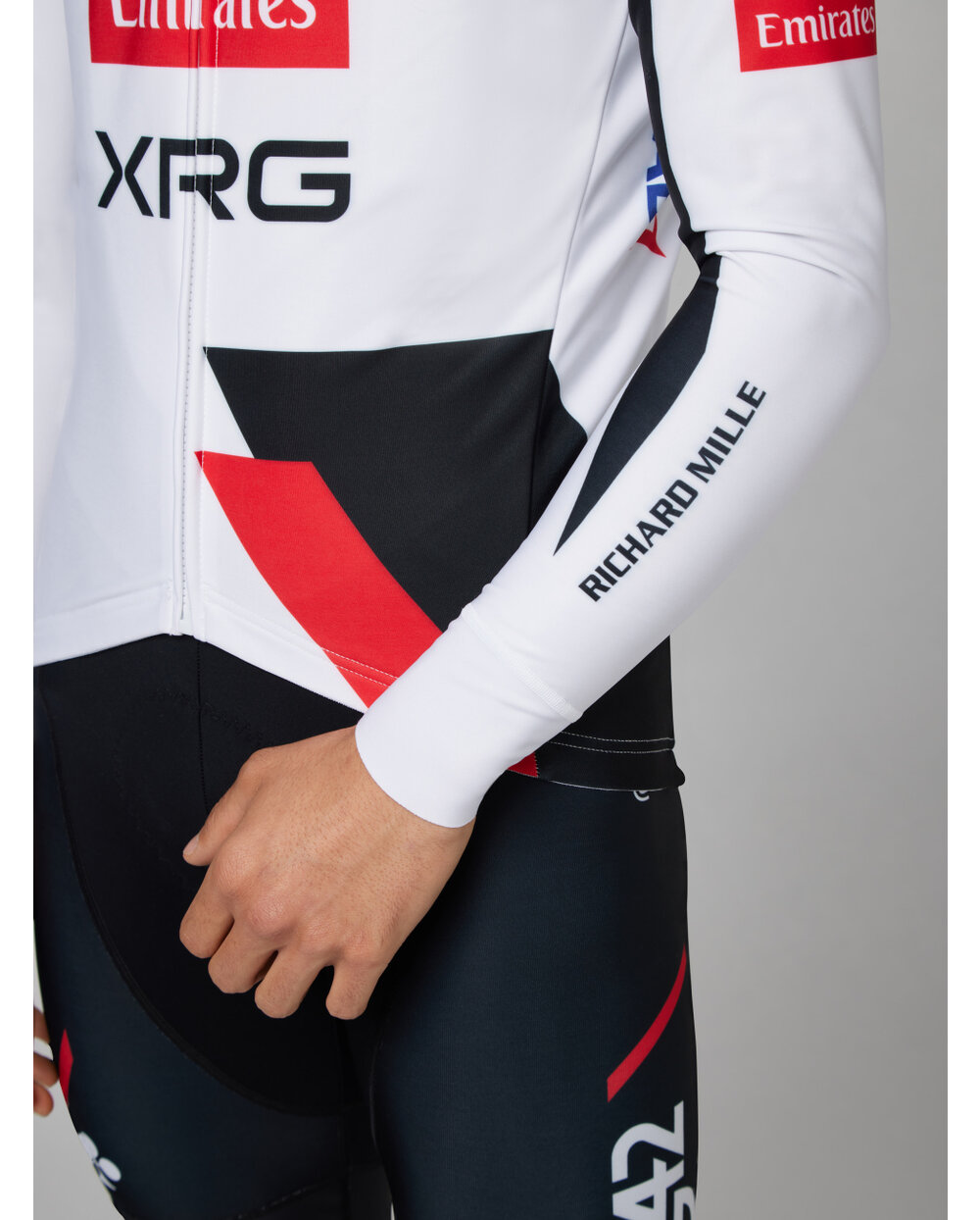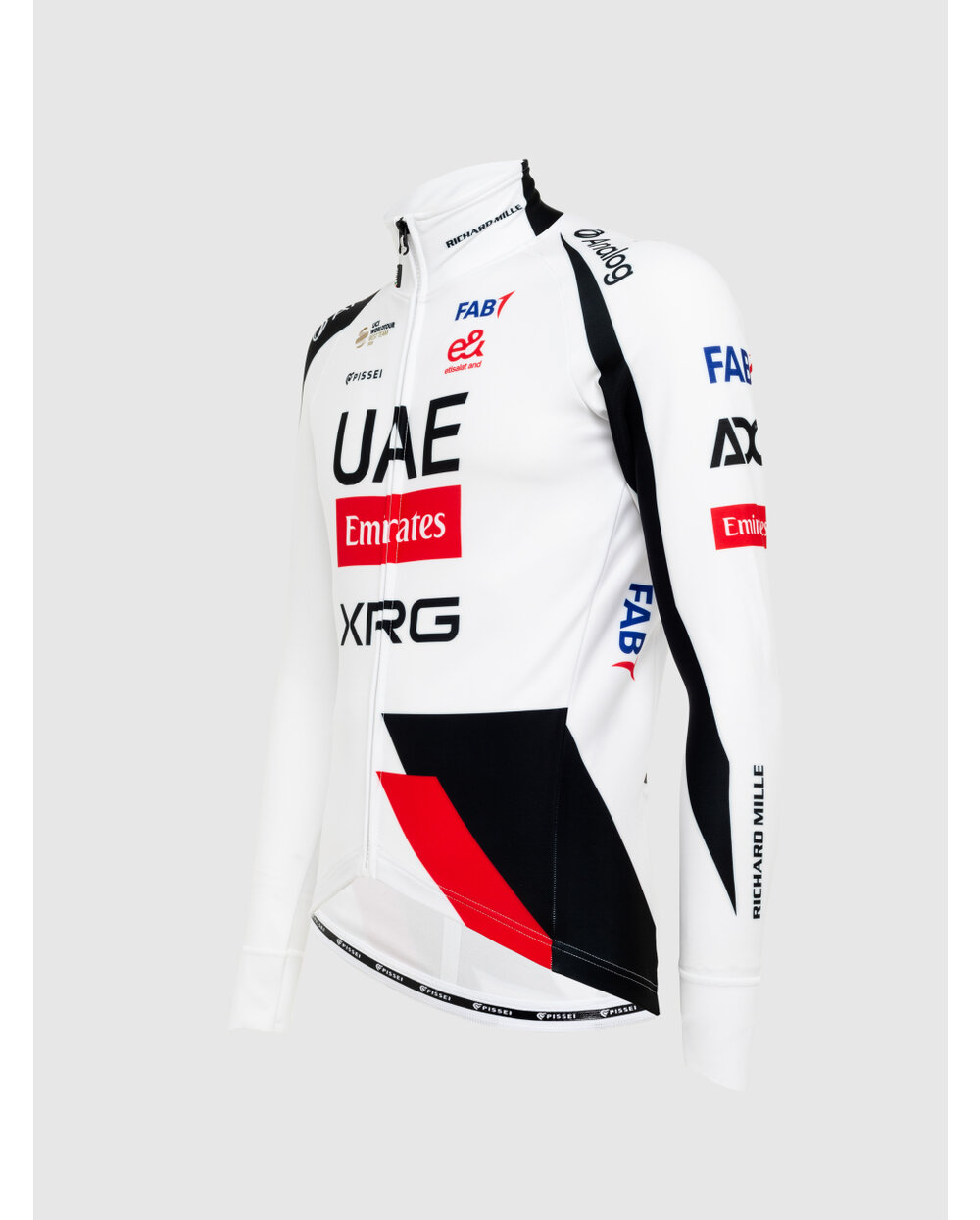 The jersey is made from a lightweight, highly breathable brushed fabric, designed to offer the same moisture-wicking performance as a summer jersey while providing a light internal layer that ensures thermal comfort and quick drying.