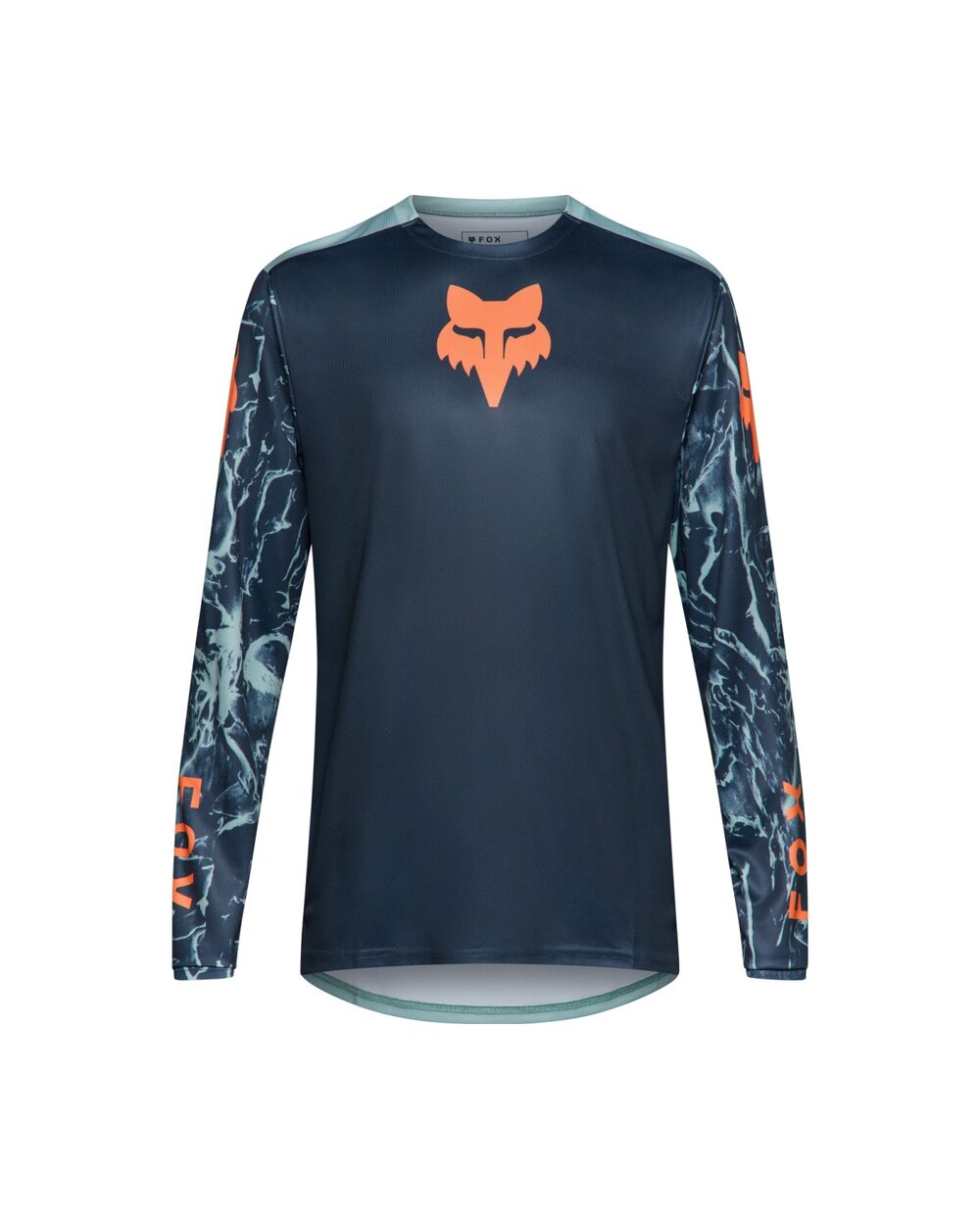 Men's Fox Ranger Image Print LS Jersey is a technical cycling jersey with long sleeves, designed for mountain biking (MTB), trail and all-mountain. Thanks to the highly breathable polyester mesh material, it efficiently wicks away sweat and keeps you dry even during intense riding. MTB specific cut with extended rear part (drop tail) increases comfort and coverage when pedaling, while the modern printed design complements the iconic Fox Head logo.