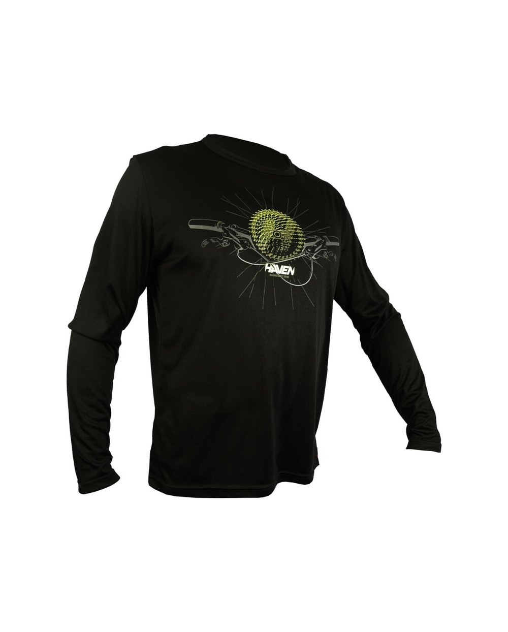 Popular loose-fitting T-shirts (jerseys) in new designs and proven colour combinations complete the Haven collection. A loose-fitting men's long-sleeved T-shirt-style jersey in functional material to go with Navaho or Singletrail shorts. Suitable for a variety of sports ... cycling (longer back), running, inline and fitness. A comfortable men's jersey with a good moisture wicking ability, helping to move sweat away from the skin faster. The jersey comes with both long and short sleeves. 100% polyester Wash all Haven textiles at 30°C without fabric softener in special detergents designed for sportswear that do not damage delicate fibres. Recommendation.