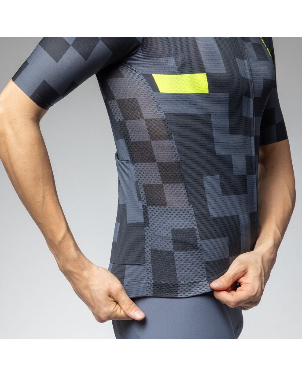 The PRAGMA Pixel jersey takes comfort to a new level. Thanks to the Body Mapping technology, the individual materials are distributed in such a way that the jersey fits perfectly in the area of the neck, sleeves and waist and at the same time maintains maximum breathability under any conditions.