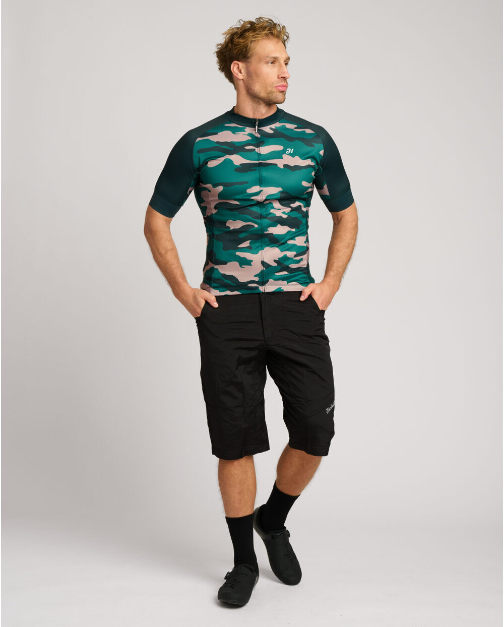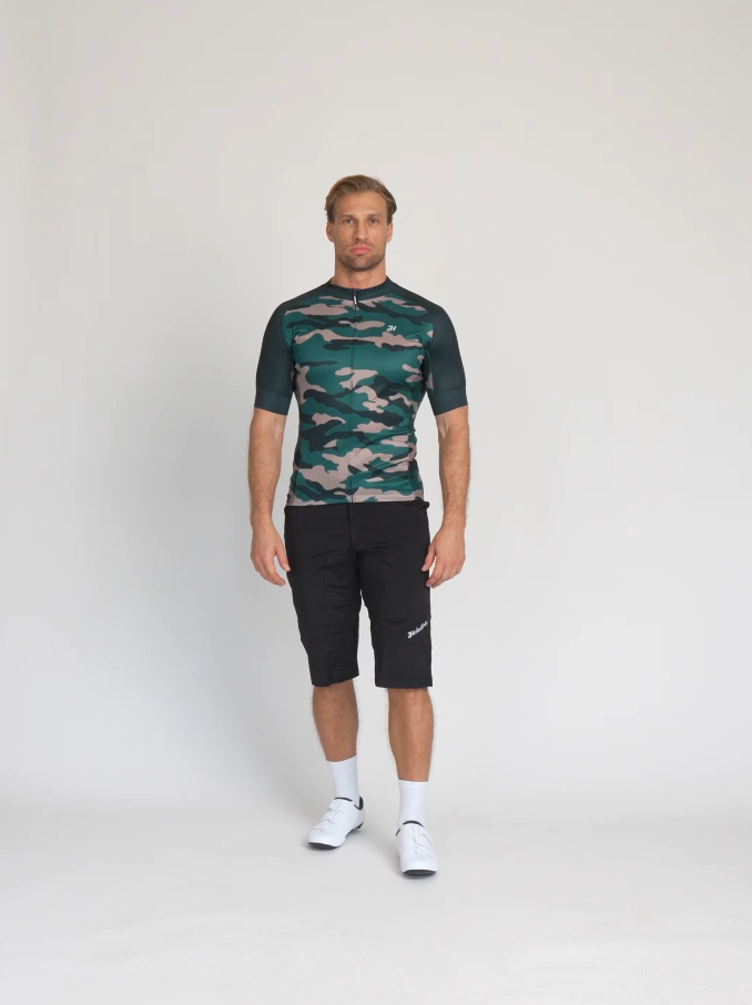 It's made from a tougher stretch fabric combined with a highly breathable mesh fabric on the sides to wick away perspiration. It features a classic triple pocket and a zipped security pocket. The lower perimeter of the jersey and the sleeves feature anti-slip finishes. The jersey's design is completed by a camouflage pattern that underlines its natural character.