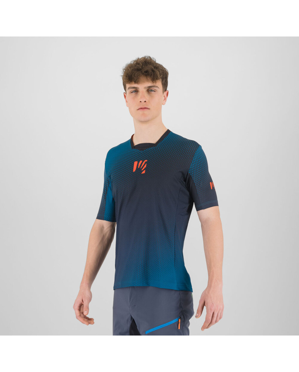 The PánceKarpos Val Di Dentro Cycling T-Shirt is made from a pair of functional materials that ensure optimal comfort during all-day flights. On the handsá heá there is an extremely elastic materialá whoá ensures a fitá and freedom of movement. Permeability and evacuation of perspiration from the skin are ensured by the perforated material on the front and back. The characteristics of this garment are as follows