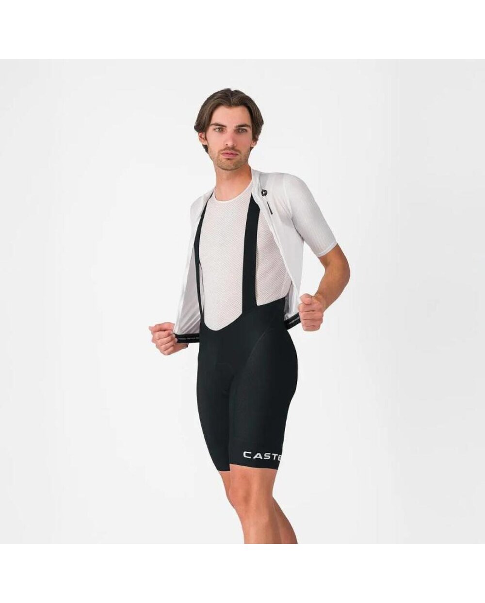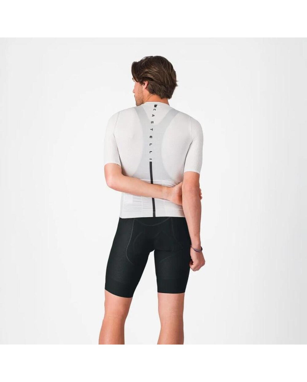 We developed these shorts to offer the maximum technology from our top line for professionals at an affordable price. They are great comfortable performance shorts that can handle even weekend races. The larger part of the pants is made of textured Vortex material. We've used a wide, elastic leg end with integrated silicone, which makes the pants fit securely and comfortably. The KISS Air2 insole is almost as comfortable as our top insole, but at a much better price. We have improved the straps: the back is mesh for breathability, the front part of the straps is made of light elastic material, which makes them comfortable to wear all day. The elusive element that you will appreciate the most is our ability to combine it into a cut that fits perfectly thanks to the CASTELLI development team.
