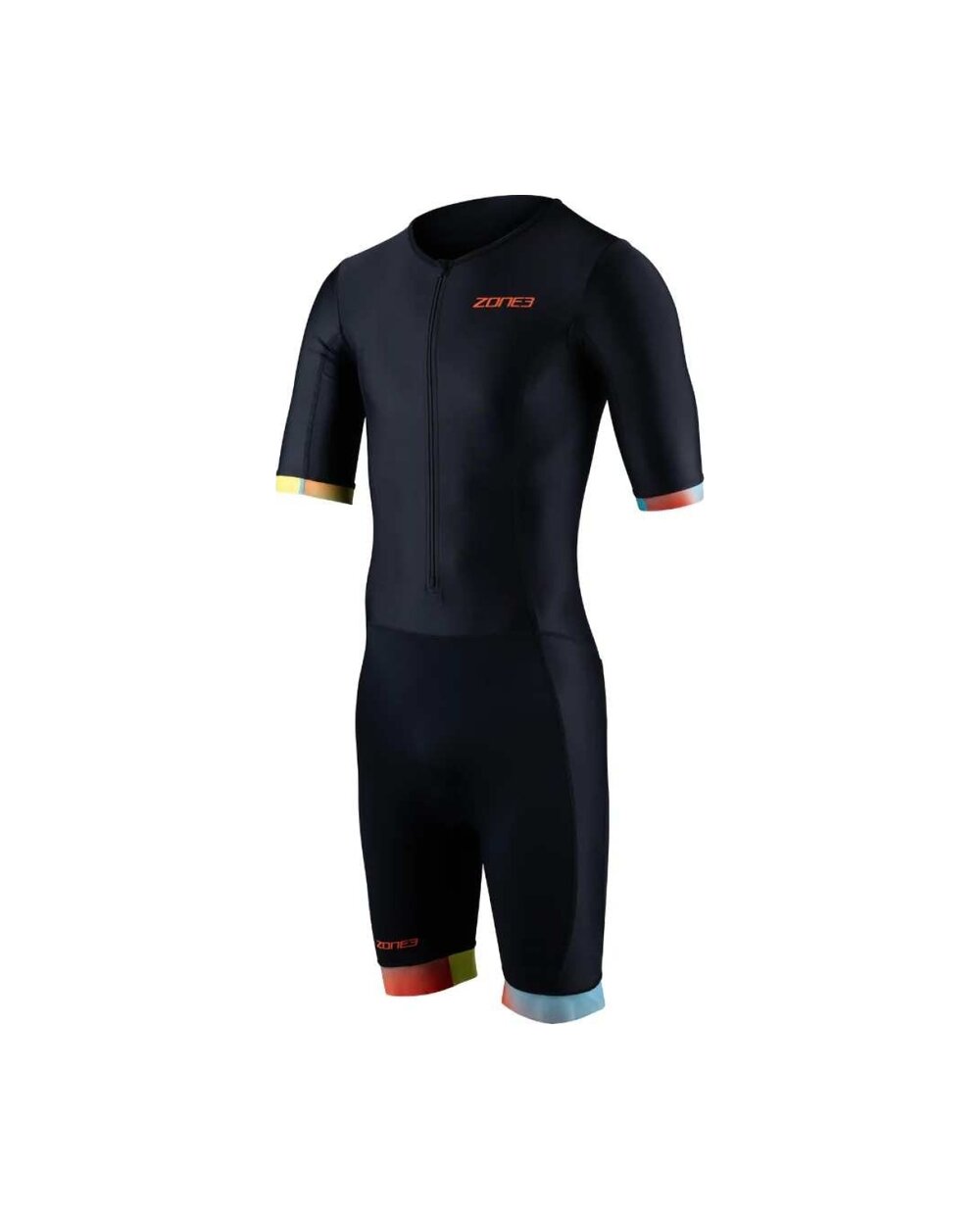 The Zone3 Men's Activate+ Short Sleeve Trisuit is a high performance short sleeve triathlon suit designed for both training and racing use. This one-piece trisuit combines comfort, aerodynamics and modern design while allowing maximum freedom of movement for swimming, cycling and running.