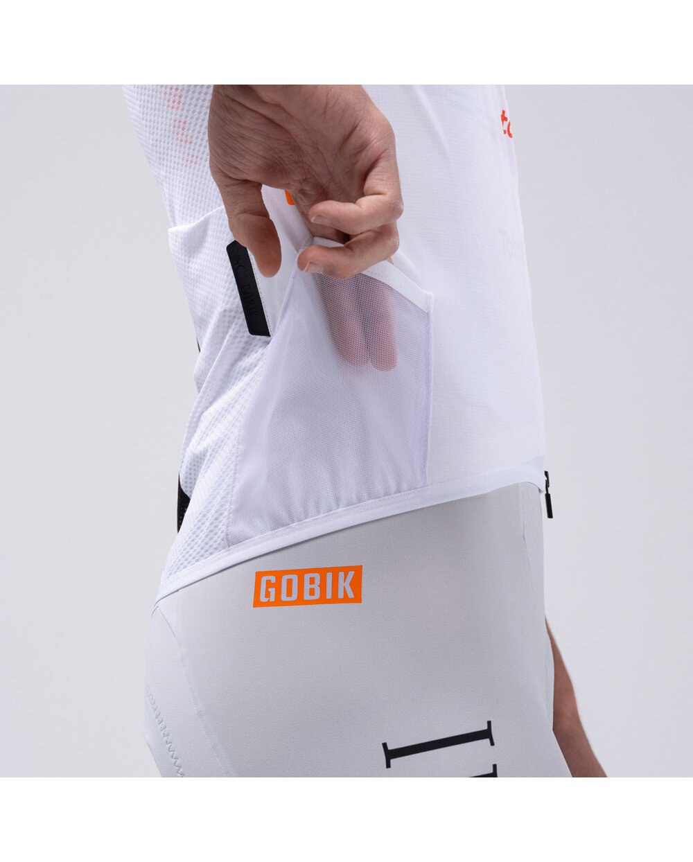 The new optimized pattern improves the fit, ensuring perfect integration over the jersey without causing discomfort or restrictions. It features redesigned rear openings, allowing quick and easy access to the jersey pockets, even while in motion.