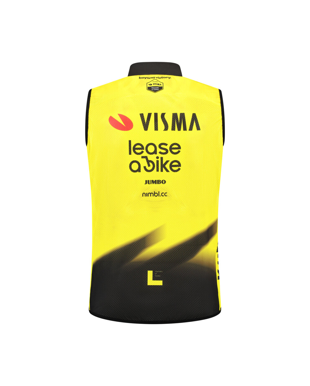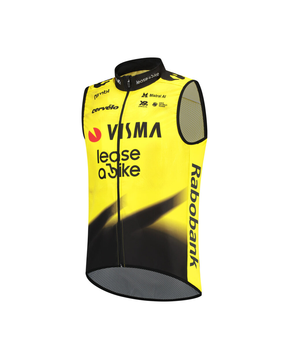 Vest of Team Visma | The Lease a Bike is lightweight, which makes it ideal for use in colder weather. The wind-resistant and water-repellent front part will ensure that your ride will be much more comfortable. A mesh insert on the back, elastic Lycra panels on the sides and a camlock zip along the front complete the windbreaker and make it the perfect accessory to take with you when you expect changeable weather.