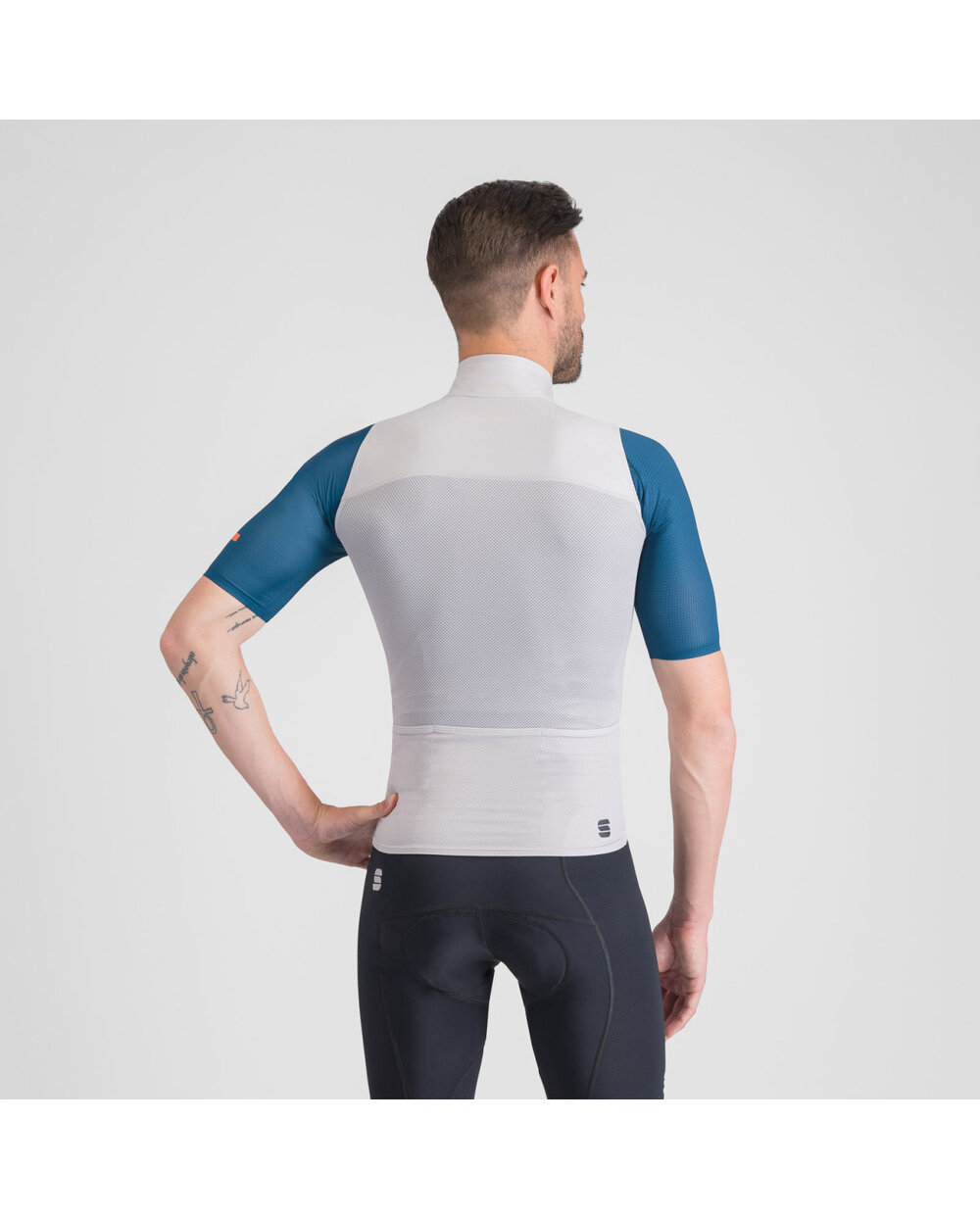 • Three back pockets – plenty of space for energy gels, arm warmers, or other small items.