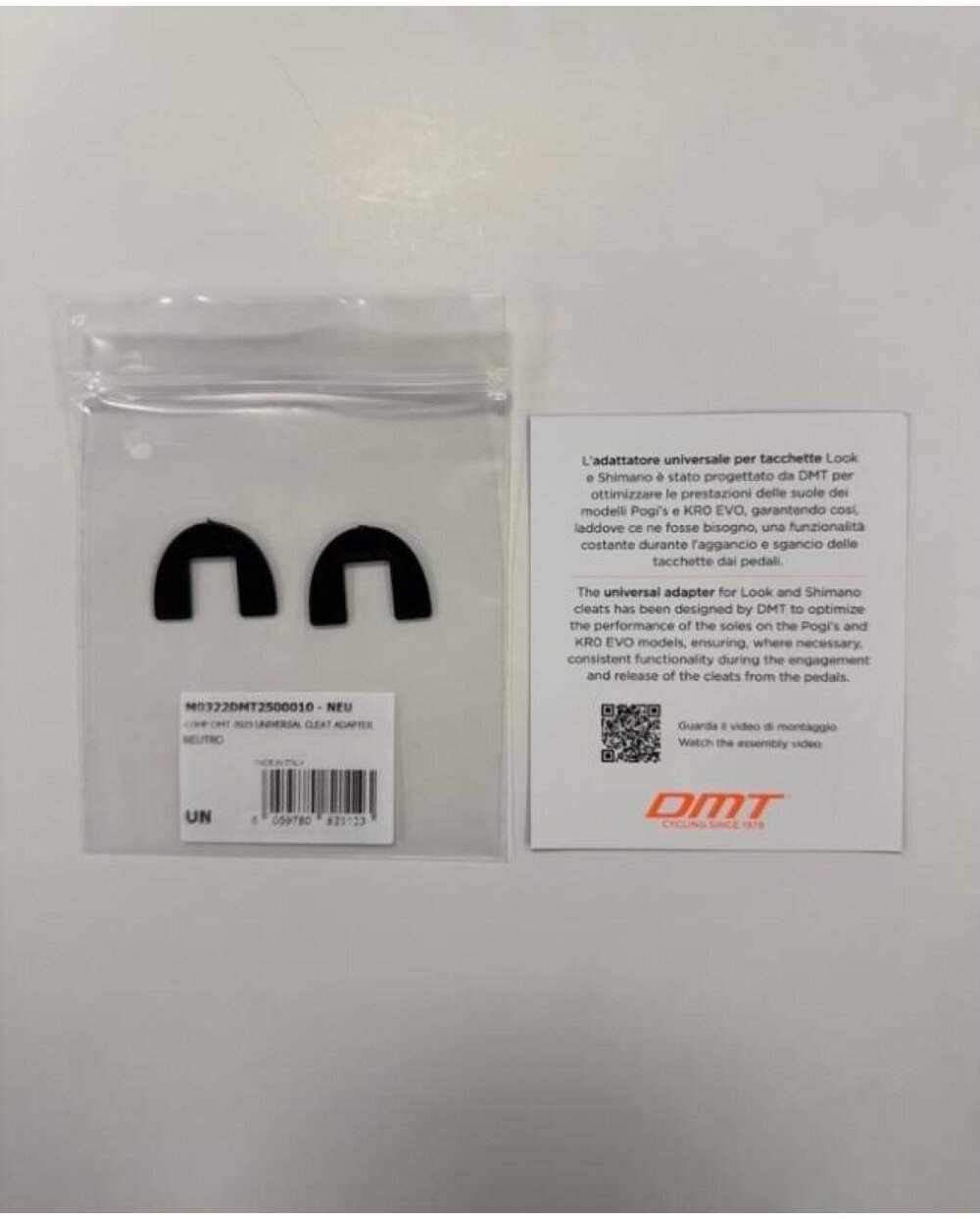 Universal pad for the front of Look/Shimano cleats designed by DMT to optimize the shape of the sole to ensure full functionality when needed, both when clipping and unclipping the pedal.Ideal especially for smaller tripods where the curvature of the sole is slightly greater than the curvature of the contact area of the cleat on the sole.Slips on and off the pedal.