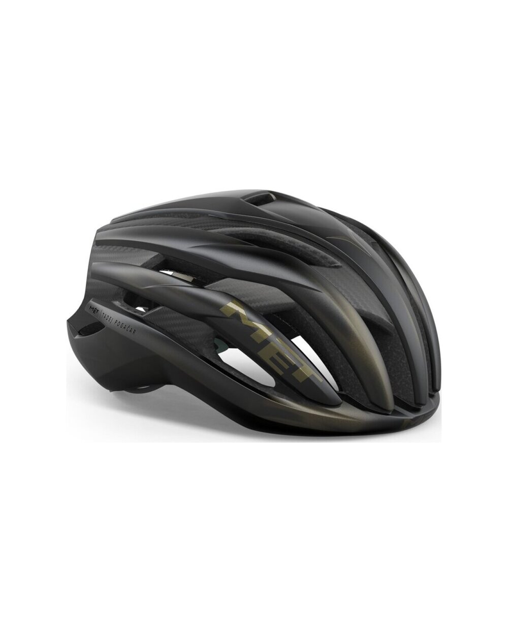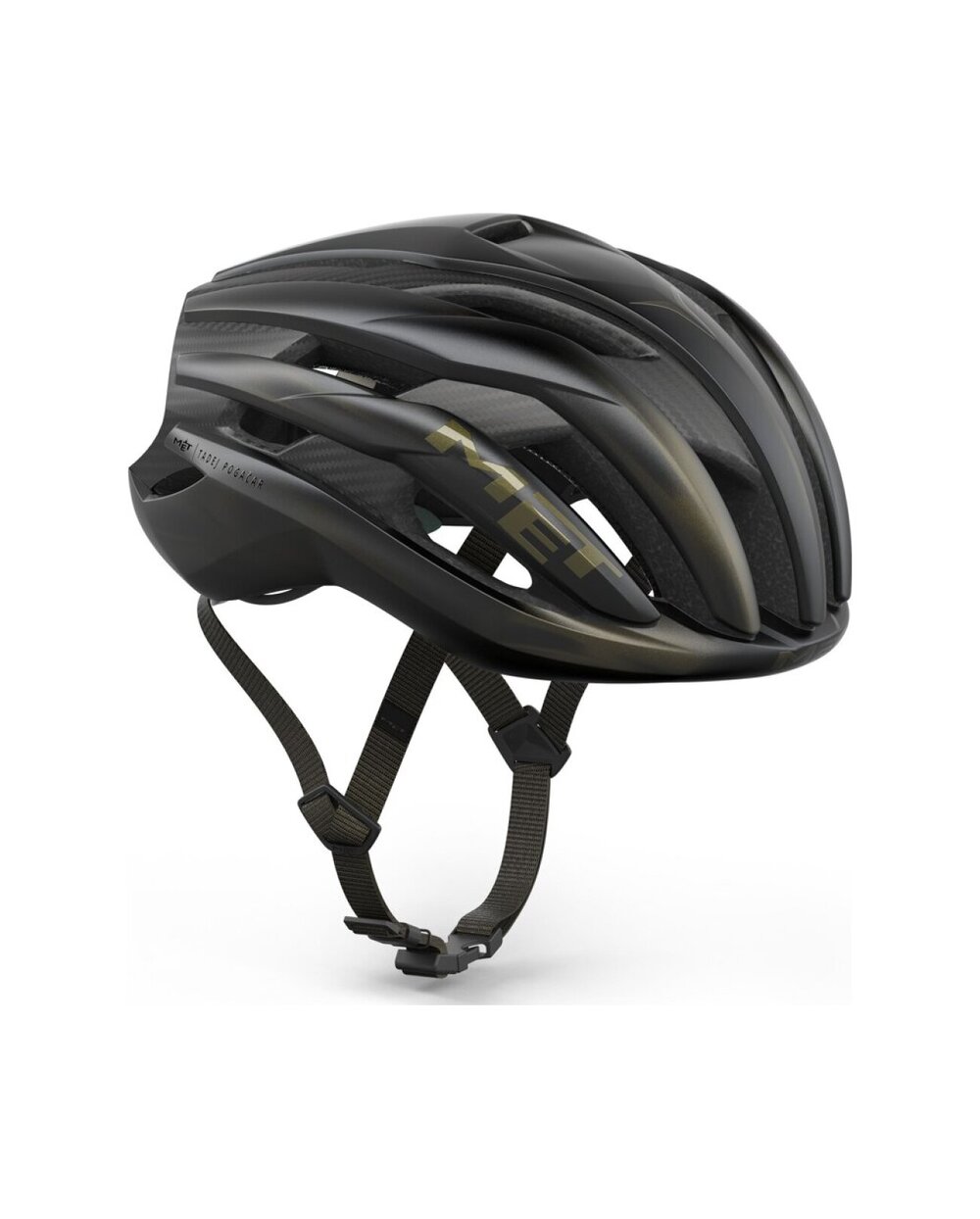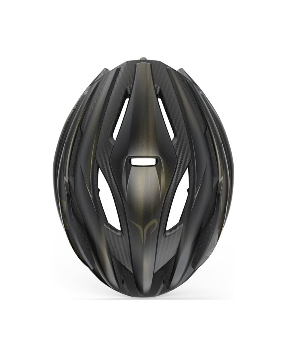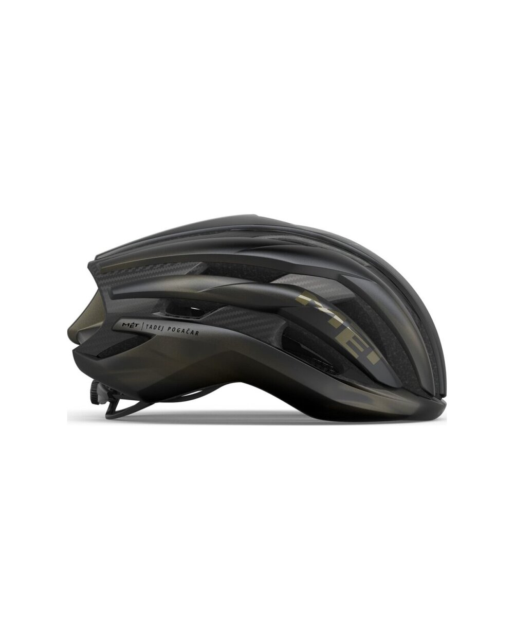 MET Trenta 3K Carbon Blačk Edition redefines our most advanced road cycling helMET with a new, exclusive design created for Tadej Pogačar. This Blačk Edition celebrates the golden era of contemporary cycling and its famous star, Tadej Pogačar—the natural talent and essence of a true champion. Its aerodynamic and innovative profile is now more pronounced and refined, with a unique color combination of black—symbolizing elegance and authority—and gold, representing a season full of victories. By integrating the MIPS AIR® system, we have incorporated the lightest and most advanced rotation control system directly into the helMET padding. MIPS AIR® is specifically designed to mitigate the rotational forces that can be transmitted to the head in some angled impacts, allowing relative movement between the energy absorbing layer and padding of up to 10-15mm for optimal protection. The MET Trenta 3K Carbon MIPS construction sets an unrivaled performance standard. Our research team used the elastic modulus of carbon fiber to reduce the density of the EPS foam by 20%, creating a lighter but more powerful shell that sets a new standard in vented helMET design. Using the Venturi effect, the helMET directs hot air through strategically placed exhausts, ensuring continuous airflow without increasing drag. The back of the helMET improves aerodynamics, working with the front NACA vent and rear deflector to guide airflow with optimal efficiency. Key Features