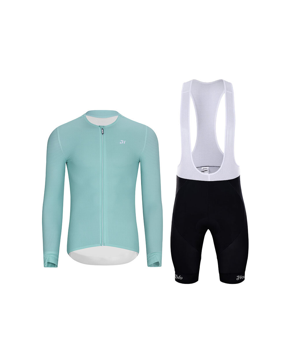 Complete your cycling outfit with a functional and stylish set from HOLOKOLO, ideal for both high-intensity training and long rides. The combination of the ELEVATE long-sleeved summer cycling jersey in light blue and the NEAT black bib shorts offers a balance of comfort, performance and modern minimalist design. The ELEVATE 2026 jersey is designed for passionate cyclists who want to push their limits. Thanks to a new fabric with an airy texture, it effectively wicks away moisture even during high-intensity rides, fits the body well and reliably retains its shape. Wearing comfort is enhanced by an improved collar design, a zip with neck protection, three practical rear pockets complemented by a hidden zipped pocket, and a non-slip hem at the back of the jersey. The NEAT cycling shorts with braces are designed to ensure comfort on every ride. The functional quick-drying fabric ensures a comfortable feel even during longer rides, whilst the comfortable gel pad helps wick away sweat and reduce friction. The elasticated unisex fit adapts well to the body, and the silicone hem keeps the shorts firmly in place whilst on the move. This set is a great choice for cyclists looking for reliable technical clothing with an emphasis on functionality, comfort and a clean, sporty look. The light blue jersey and black shorts combine to create a timeless ensemble ready for any ride.