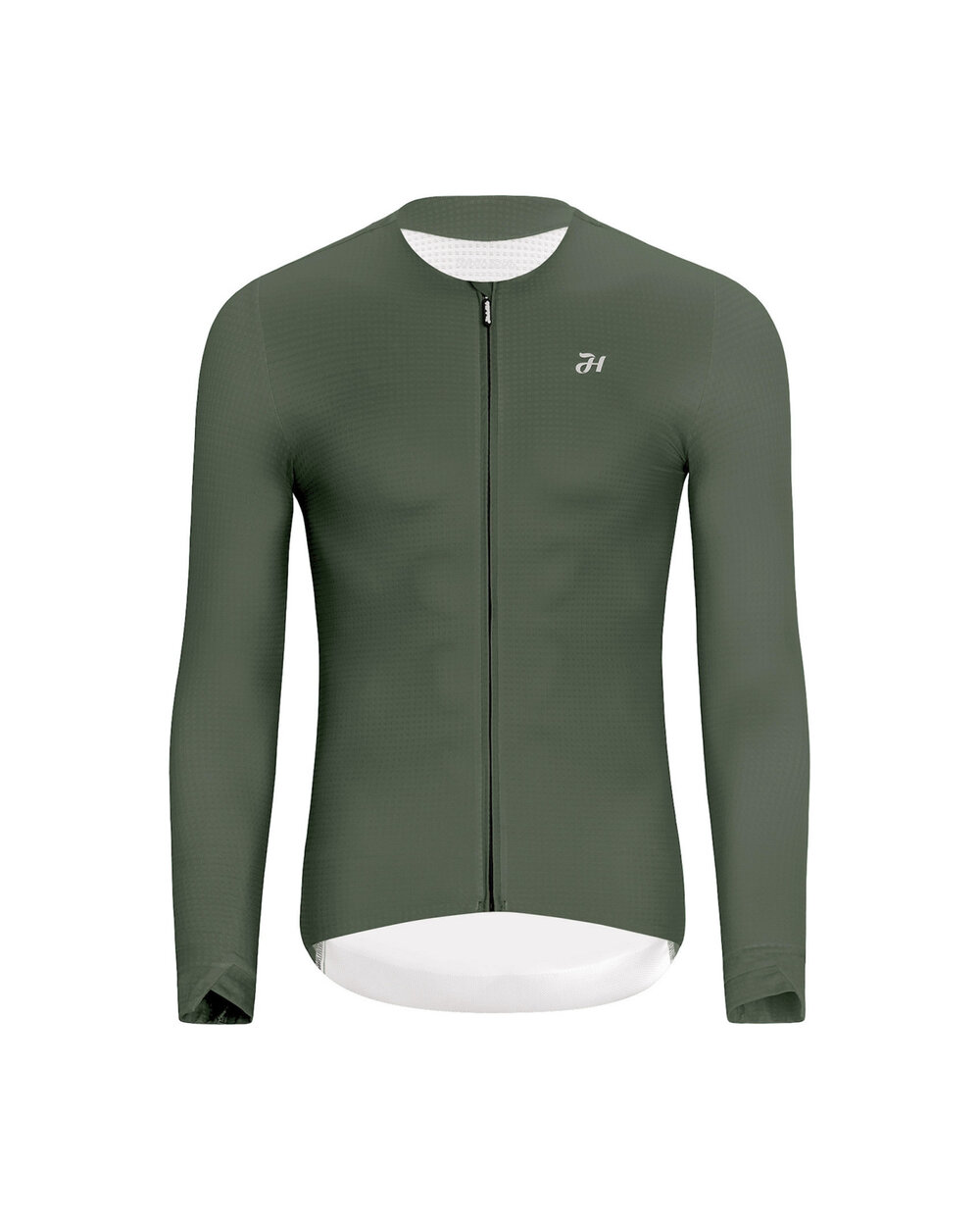 The HOLOKOLO performance cycling kit is the ideal choice for cyclists looking for a combination of comfort, functionality and modern style during both training sessions and long rides. The combination of the HOLOKOLO ELEVATE long-sleeved summer jersey in green and the HOLOKOLO NOVEL PRO bib shorts in anthracite offers kit designed for maximum performance and comfort in the saddle. The jersey stands out for its lightweight, breathable fabric with an airy texture, which effectively wicks away moisture even during high-intensity rides. It adapts to the body, retains its shape well and, thanks to its thoughtful cut, provides high comfort throughout your ride. It naturally features an improved collar, a zip with neck protection, three rear pockets with a hidden zipped pocket, and an anti-slip hem at the back of the jersey. The bib shorts are designed for demanding cyclists and long hours in the saddle. An ergonomic cut, breathable materials and excellent moisture-wicking properties help keep the body dry and comfortable. A premium foam cycling pad with gel inserts on the sides ensures reliable shock absorption and support even on long rides. Lightweight, durable and elastic materials also provide gentle compression, improve mobility and help reduce muscle fatigue. This set is a great choice for anyone who wants to ride in style, comfortably and without compromise. The minimalist design, functional details and high-quality workmanship make this combination a reliable partner for any peloton.