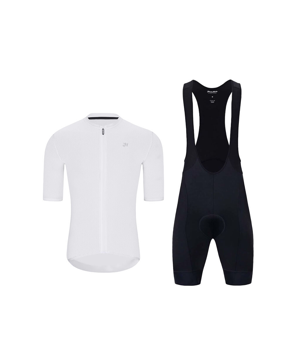 This cycling set combines the lightweight and highly breathable HOLOKOLO AEROLITE short-sleeved jersey in white with the HOLOKOLO ELITE black cycling shorts with braces. Together, they form the ideal combination for cyclists seeking comfort, freedom of movement and reliable performance during daily training, longer rides and cycling in warm to hot weather.