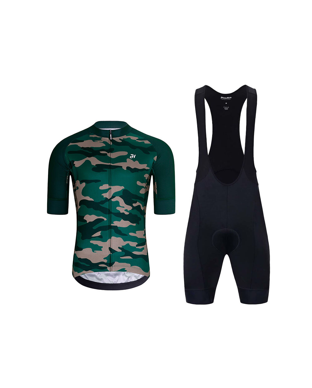 HOLOKOLO CAMOTRAIL Cycling short sleeve jersey and shorts - black/green