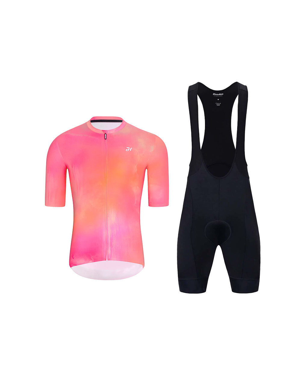 Treat yourself to the stylishly coordinated HOLOKOLO cycling set, which combines the eye-catching COSMA jersey in orange and pink with high-quality ELITE black bib shorts. This combination is the ideal choice for cyclists seeking style, comfort and reliable performance for training, leisure rides and everyday commuting. The COSMA jersey is made from a lightweight, high-quality and exceptionally breathable fabric that feels very comfortable against the skin. Thanks to its good elasticity, it fits the body beautifully, retains its shape and provides comfort throughout the ride. It naturally features a full-length front zip with neck protection, a triple rear pocket, a zipped security pocket and a seamless hem with anti-slip print, which helps keep the jersey in place. The ELITE bib shorts complement the set with a high level of support and comfort. The elastic fabric with a Spandex blend ensures excellent fit and muscle support, whilst the bib straps made from extremely elastic mesh improve ventilation and wearing comfort. The multi-layer breathable cycling pad is designed for rides lasting up to 6 hours or more, so you can rely on comfort even on longer routes. Silicone grippers keep the shorts firmly in place and reflective elements increase your visibility. This cycling set is a great choice for anyone who wants to combine functional materials, modern design and comfort with every kilometre.