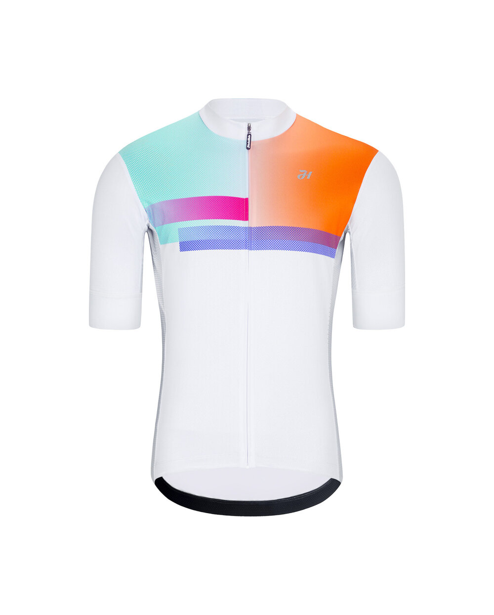 The jersey is made from a durable yet flexible fabric that adapts to the body’s movements and withstands frequent use. Mesh panels on the sides and under the arms promote effective moisture-wicking and better ventilation on warm days. Practical features include a classic triple rear pocket, a zipped security pocket and anti-slip cuffs on the hem and sleeves, ensuring the jersey stays securely in place. Abstract graphics with colourful accents give the model a distinctive sporty character.