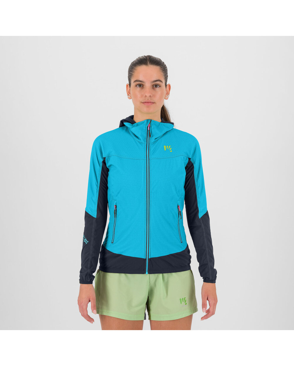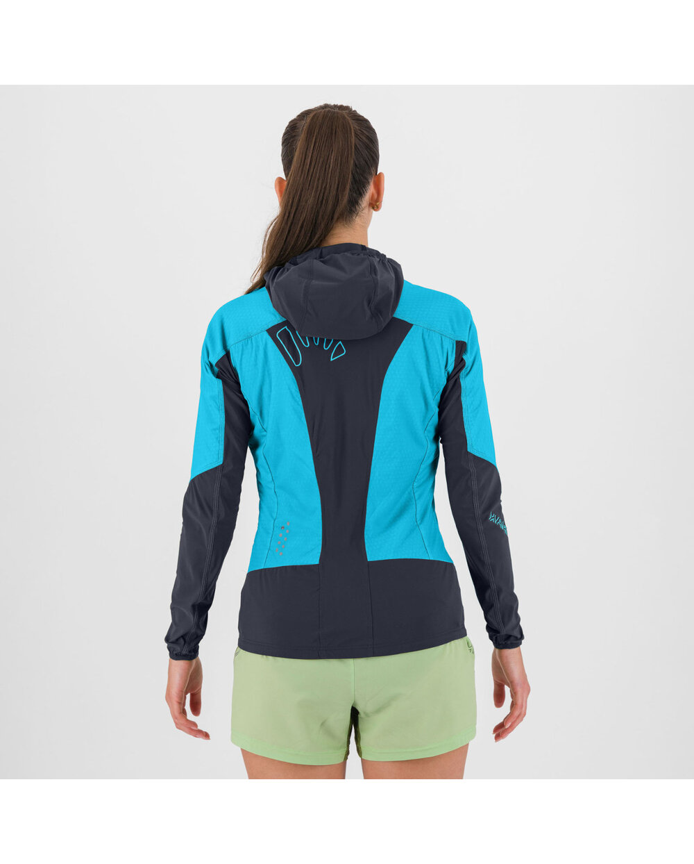 Summer, technical jacketKarpos Lavaredo is intended for running and other aerobic activities in cold weather. Thanks to the hybrid construction, the front side provides protection from the wind, heat maintenance, while the breathable sides and back efficiently wick away sweat and prevent overheating. It can also be easily packed and put away in a backpack.