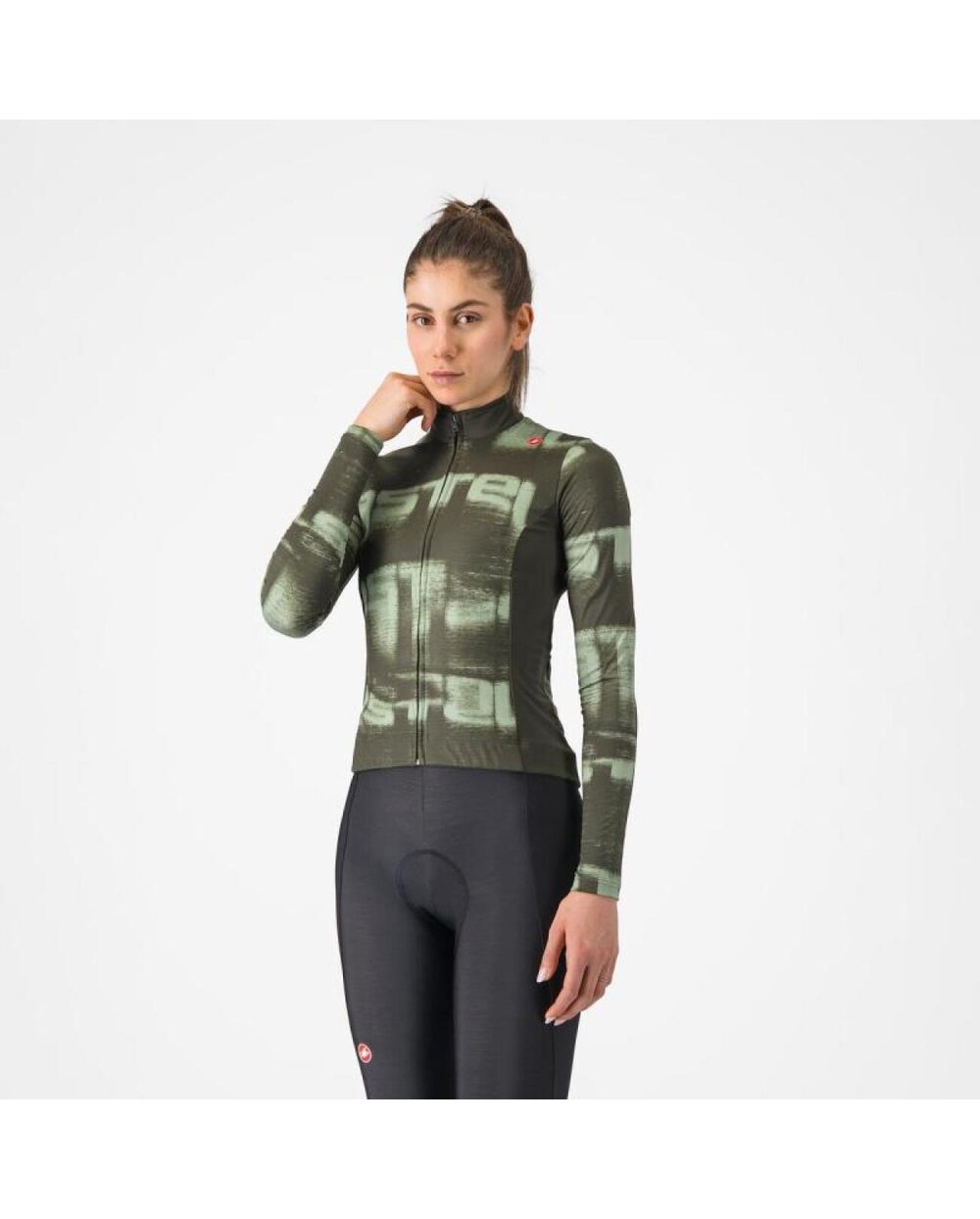 Cycling winter long sleeve jersey CASTELLI BLUR THERMAL green