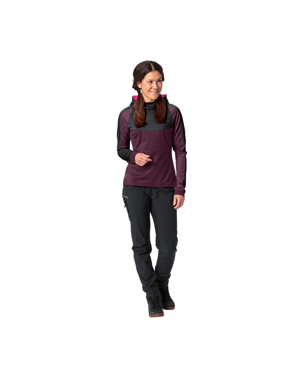 Warm comfortable women's cycling jersey for winter - Simple but highly functional multifunction jersey - A warm hood jersey made of recycled polyester offers complete freedom of movement thanks to the high proportion of the Stretch