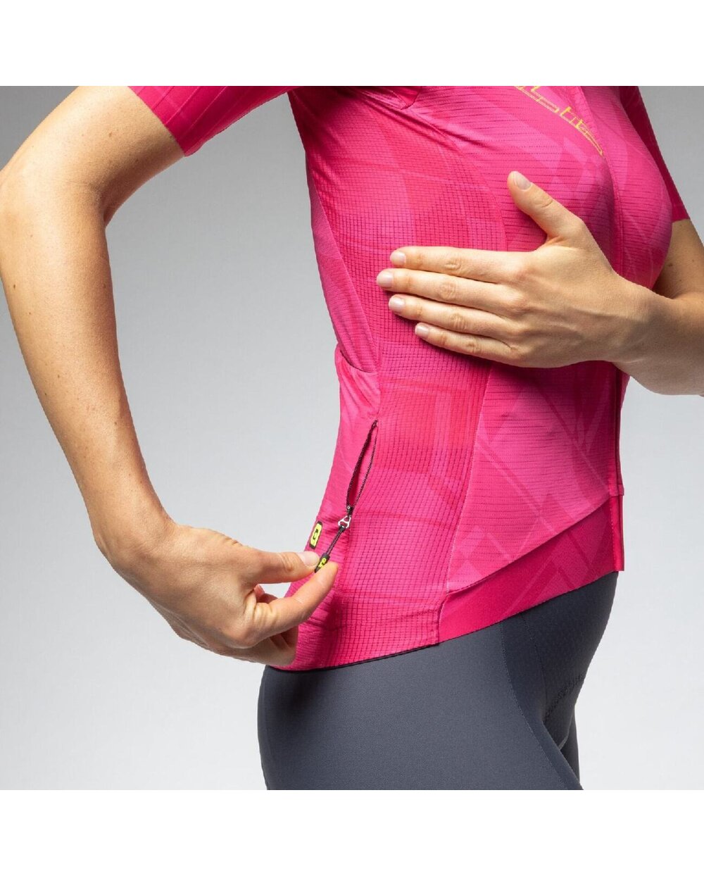 Every part of the PR-E Schema jersey has been designed to get the most out of every fabric used. It is made of Rap Dry Carbon fabric with interlaced carbon yarns, ultralight Micro Aero fabric for air circulation and Piuma mesh underarm for breathability, resulting in premium comfort weighing just 100 grams. The S-Stability system in the lower front part of the jersey guarantees an optimal fit. Sewn-in sleeves with an unlined cut.