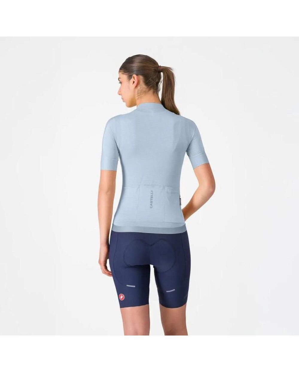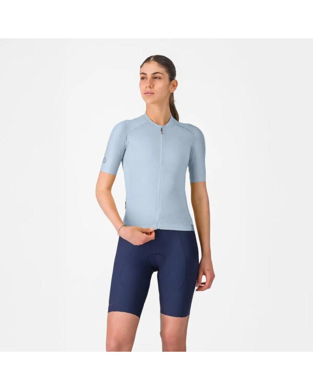AirO Stretch material developed in CASTELLI to ensure breathability, comfort and a perfect fit Fabric is adjusted for breathability and aerodynamics Comfortable sleeves with non-sewing finish 3 back pockets with a fourth zippered valuables pocket Full-length YKK® Vislon® zipper, with with a loop for easier use Elastic waistband with silicone keeps the jersey in place Reflective strip for better visibility Protection factor UPF 30 Temperature range: 18-35°C Weight: (S) 116gr Fit: adaptable