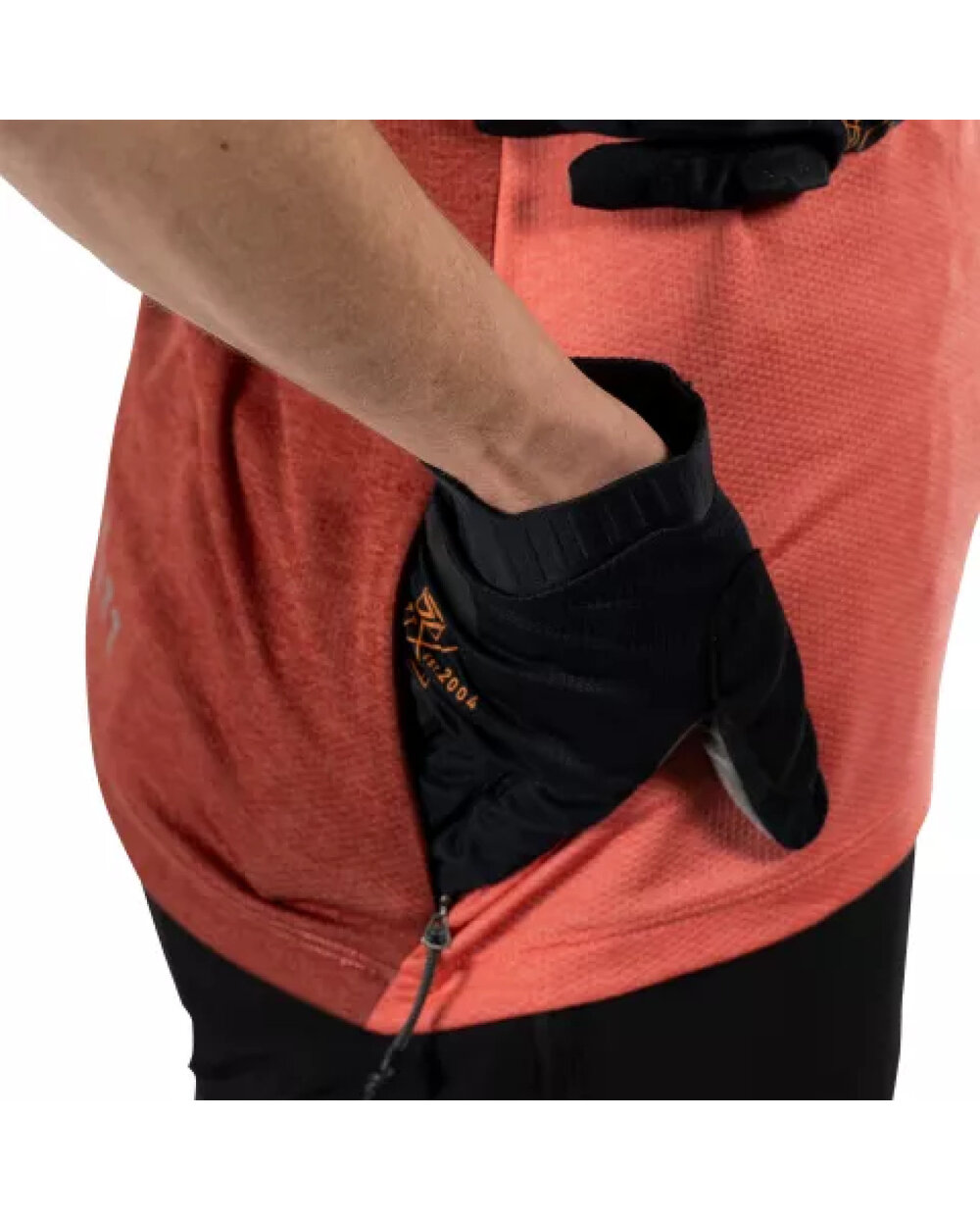 Guelled two -tone effect for casual appearance + technical structure for heat and sweat control Specially designed cut sleeves for freedom of motion The fabric is BlueSign® Approved (Sustainable and Safe Production) 1 zip pocket Laser cut perforation for ventilation Reflective details