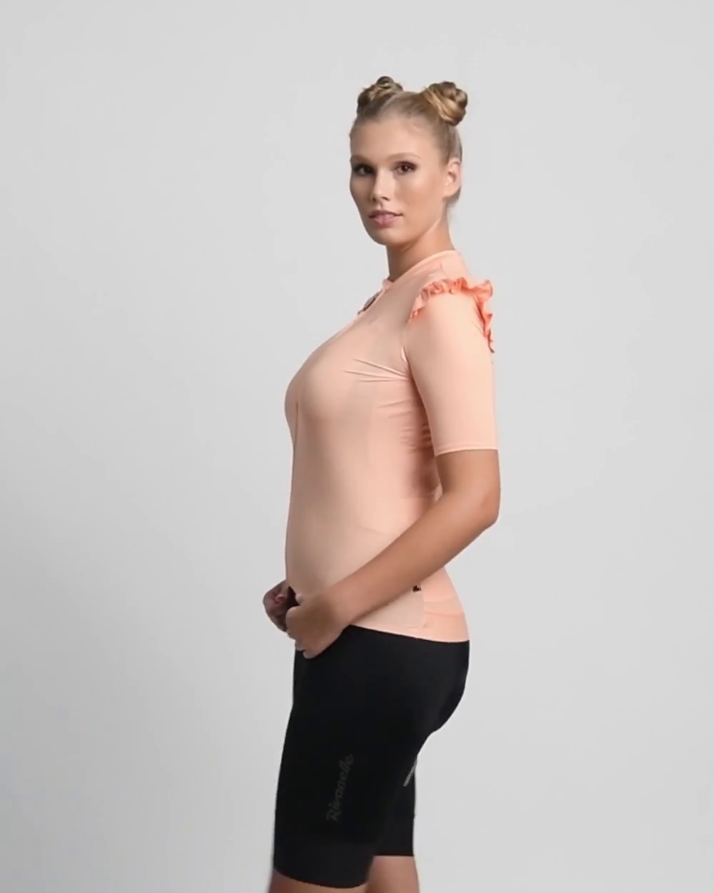 Our elegant cycling jerseys are the first of their kind, thanks to their unique design that highlights your femininity through graceful ruffles. Because every woman deserves to feel beautiful and feminine, even when she is conquering challenging routes. These jerseys perfectly combine practicality and elegance. Let your femininity shine and enjoy your ride in a style that is unparalleled.