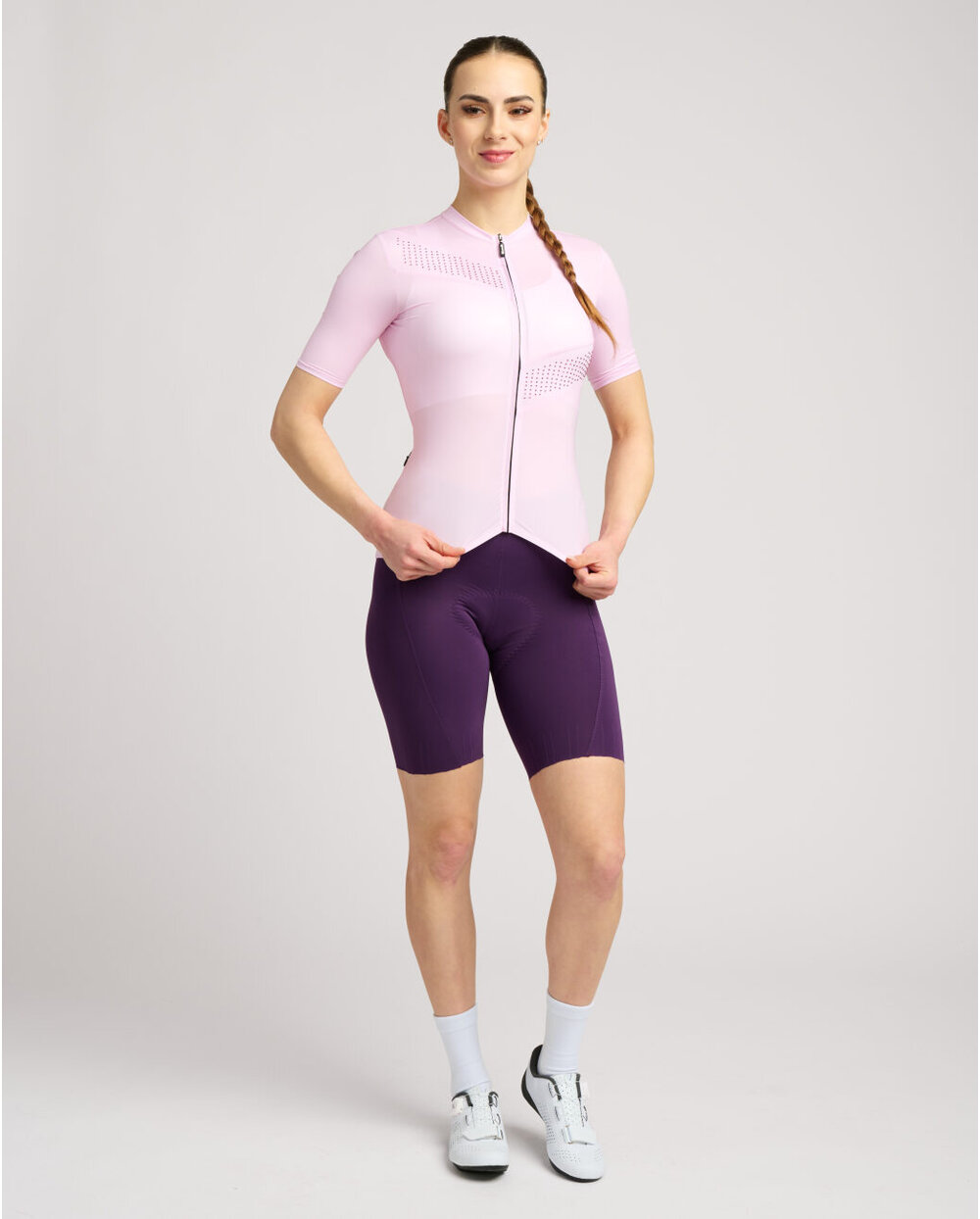 Rivanelle Crystelle is a real gem that you can take on your bike. At first glance, the minimalist design is revealed in detail when moving. Tiny tie accents that shimmer tone-on-tone with the jersey. The stones are precisely set in sloping lines, which brings a sporty touch to the design. The high-quality, lightweight fabric is very pleasant to the body and extremely airy. Thanks to its good elasticity, it adapts to each silhouette and at the same time smoothes its contours or defects. The jersey is packed with practical features and every detail is designed for your comfort. Full zipper front with protective neck gaiter. Triple pocket with zipped security pocket. Seamless hem with non-slip print on the back of the jersey. For cyclists who love minimalism but know that details matter.