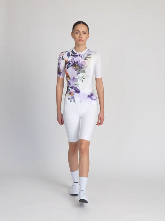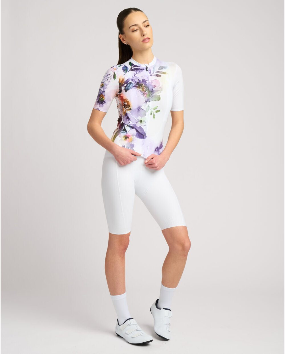 Rivanelle is here for women who want to enjoy sports and look stunning. The Miss Flowery women's cycling jersey is a celebration of femininity and the love of cycling. It highlights feminine grace and emphasizes grace in movement.