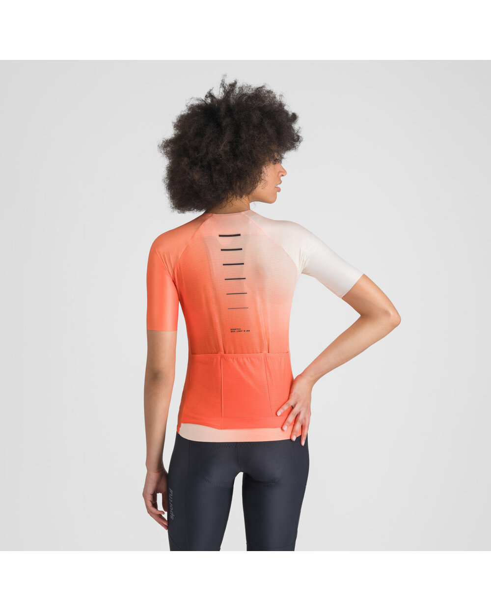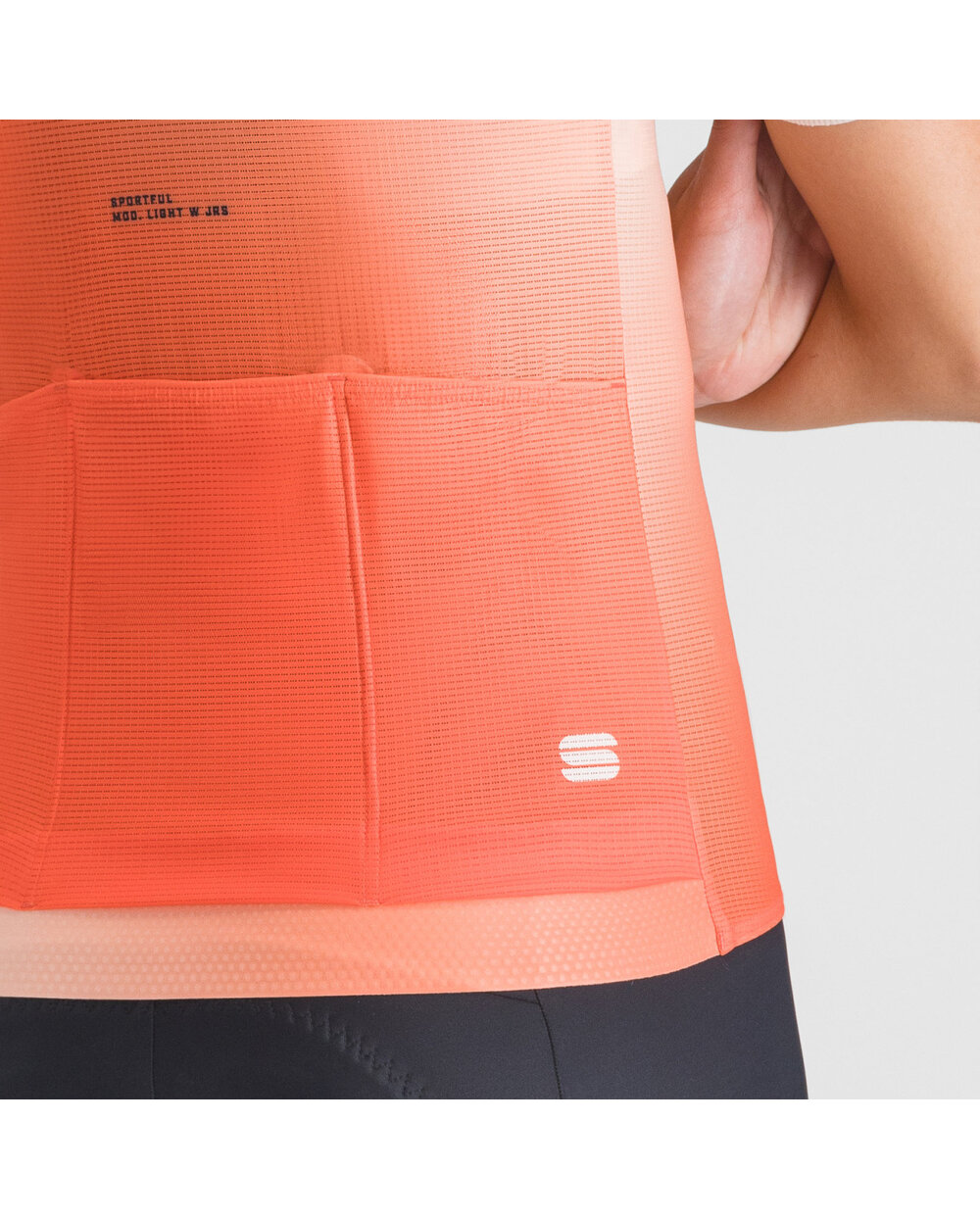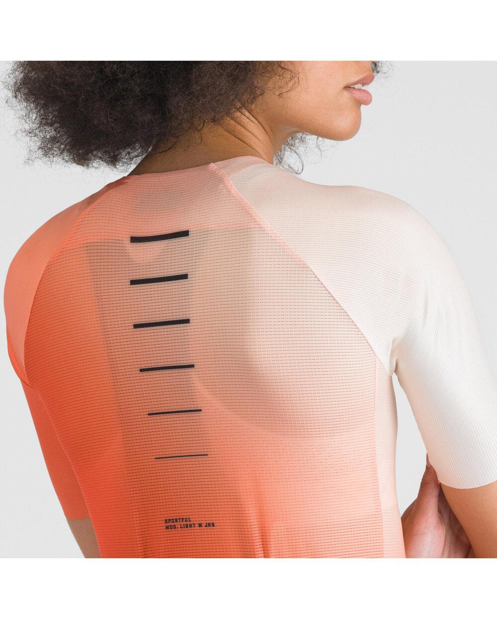 Designed for heat, built for performance Sportful Light is the lightest and most breathable cycling jersey in the Sportful collection. It is ideal for female cyclists who train or race in the summer heat (30°C and above) and require optimal sweat removal, excellent ventilation and a comfortable racing cut. Thanks to its technical construction, it will give you a feeling of dryness and comfort even during the most demanding rides. Key features: Extremely breathable front and back of the jersey The main panels are made of very light weight mesh. The material is designed to support quick sweat removal and air circulation while riding. The result is significantly reduced overheating of the body and a feeling of freshness even during longer performance. Lightness without compromising on support Despite the fact that it is an ultralight jersey, its cut holds the body shape firmly and stably. The fabrics are elastic and pleasant to the touch, which you will appreciate during long hours in the saddle. Racing aerodynamic cut The jersey is close-fitting and follows the contours of the body - ideal for riding at a high pace. Sleeves with an extended length without seams reduce aerodynamic resistance and increase comfort. Open back pockets Three standard rear pockets with elastic edges keep necessary small things in place even during dynamic driving. Thanks to the well-thought-out construction, the jersey does not stretch out and keeps its shape even after they are filled. Reliable endings The lower hem of the jersey has a silicone print on the inside, which prevents unwanted shifting during driving. All details are developed with an emphasis on functionality, lightness and stability. Reflective elements for safety On the back of the jersey there are subtle reflective details that increase visibility on the road in the morning or evening.