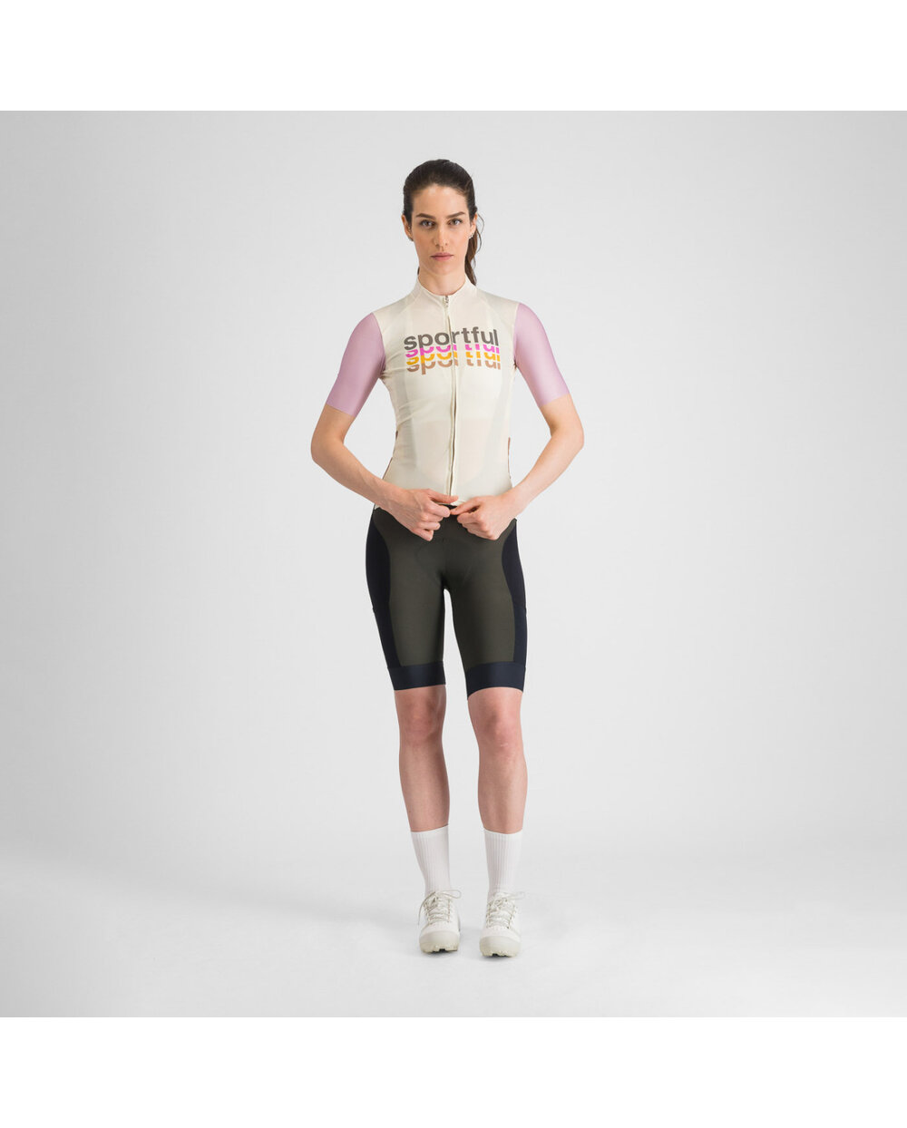 Sportful SUPERGIARA LOGO 2 women's jersey in cream shade is designed for cyclists who seek a combination of comfort, performance, and modern design. The anatomical fit ensures optimal body contouring and the functional material supports breathability and effective moisture wicking during training sessions and long rides.