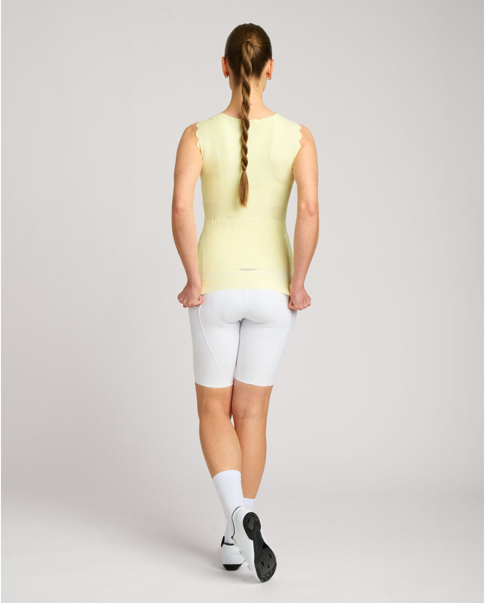 Sleeveless cycling jersey with a perfect curved hem, which also brings glamor to cycling outfits. Thicker wavy straps and a square neckline flatter shoulder proportions and any type of neckline. It doesn't lack the features you'd expect from a quality jersey. Full zipper front with protective neck gaiter. Triple pocket with zipped security pocket. Seamless hem with non-slip print on the back of the jersey.