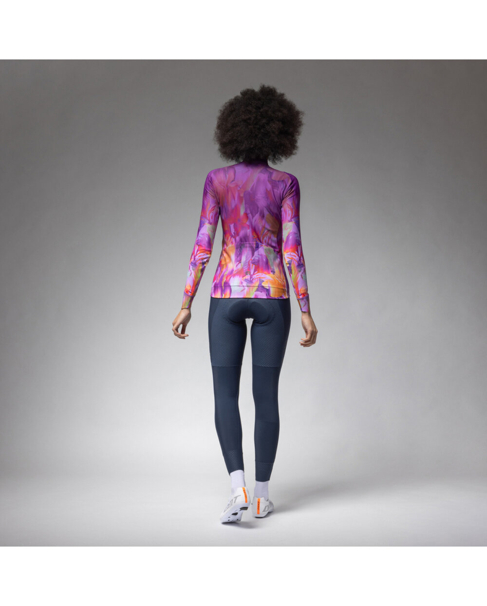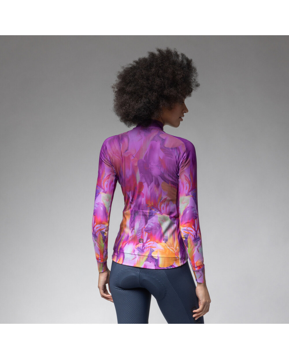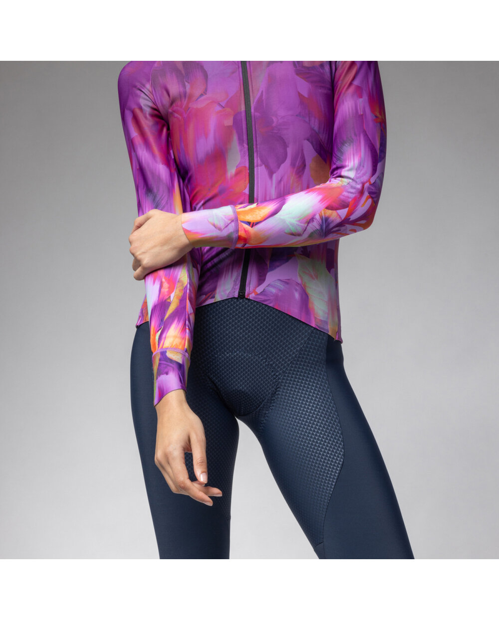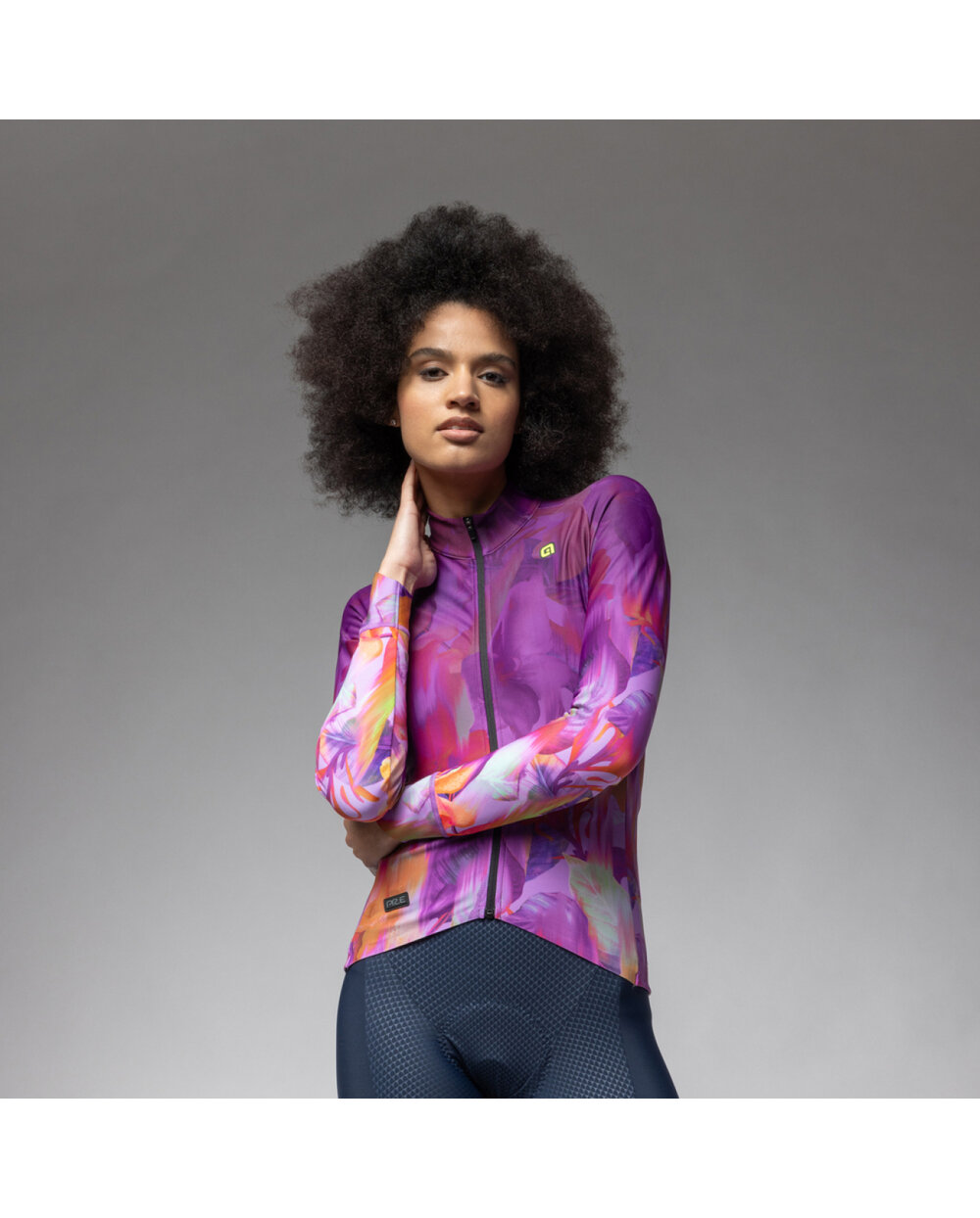 The Alé PR-E Jardin women's long-sleeved cycling jersey is designed for transitional training. It can be worn on its own or with a vest in cooler weather. Thanks to its exceptional ergonomic cut, it fits like a second skin, making it an ideal choice.