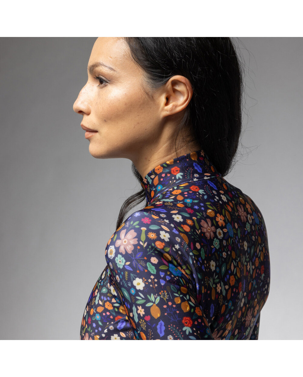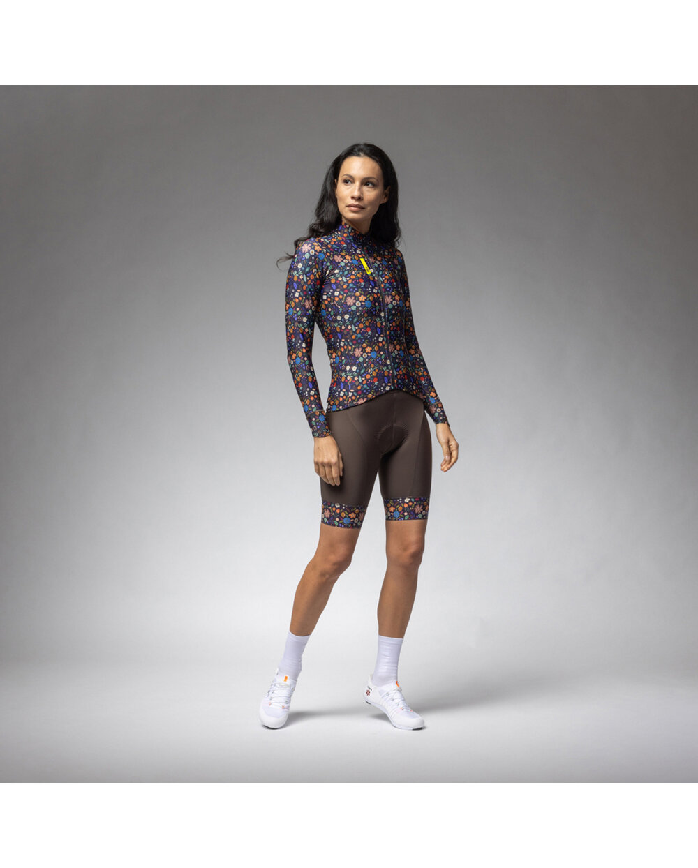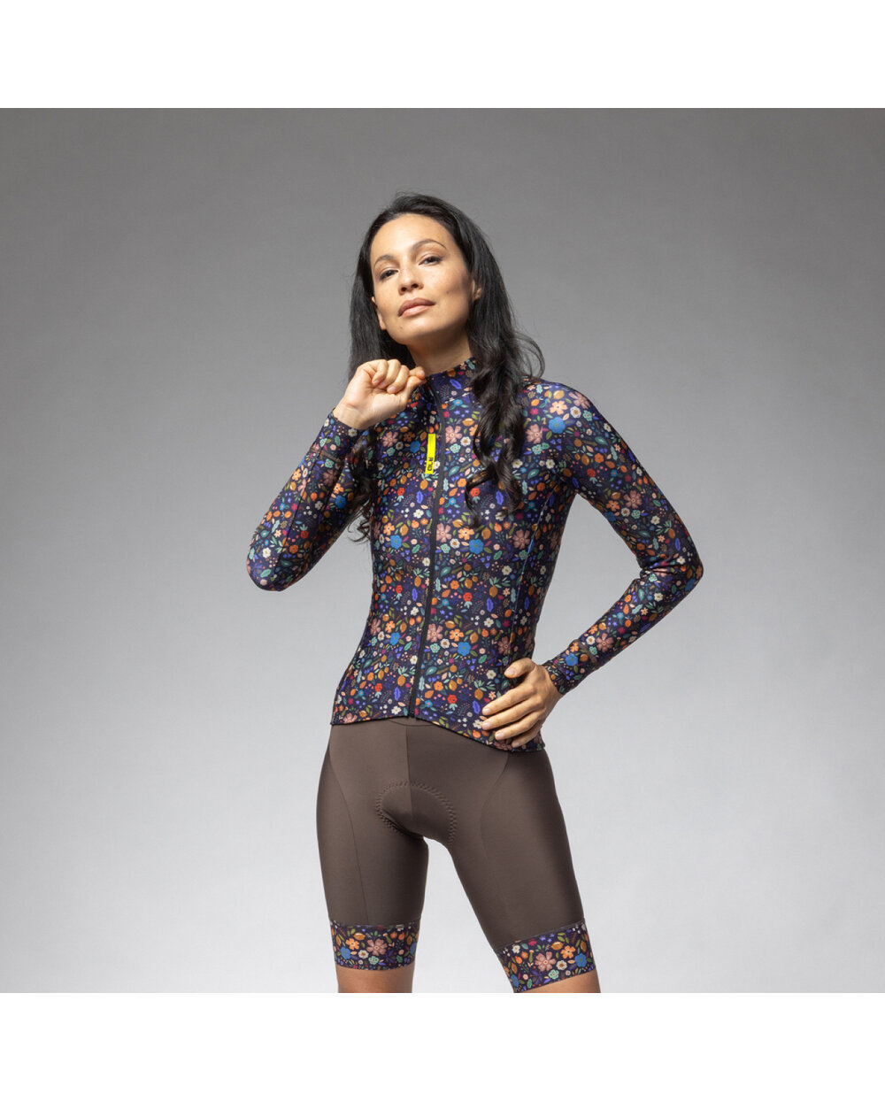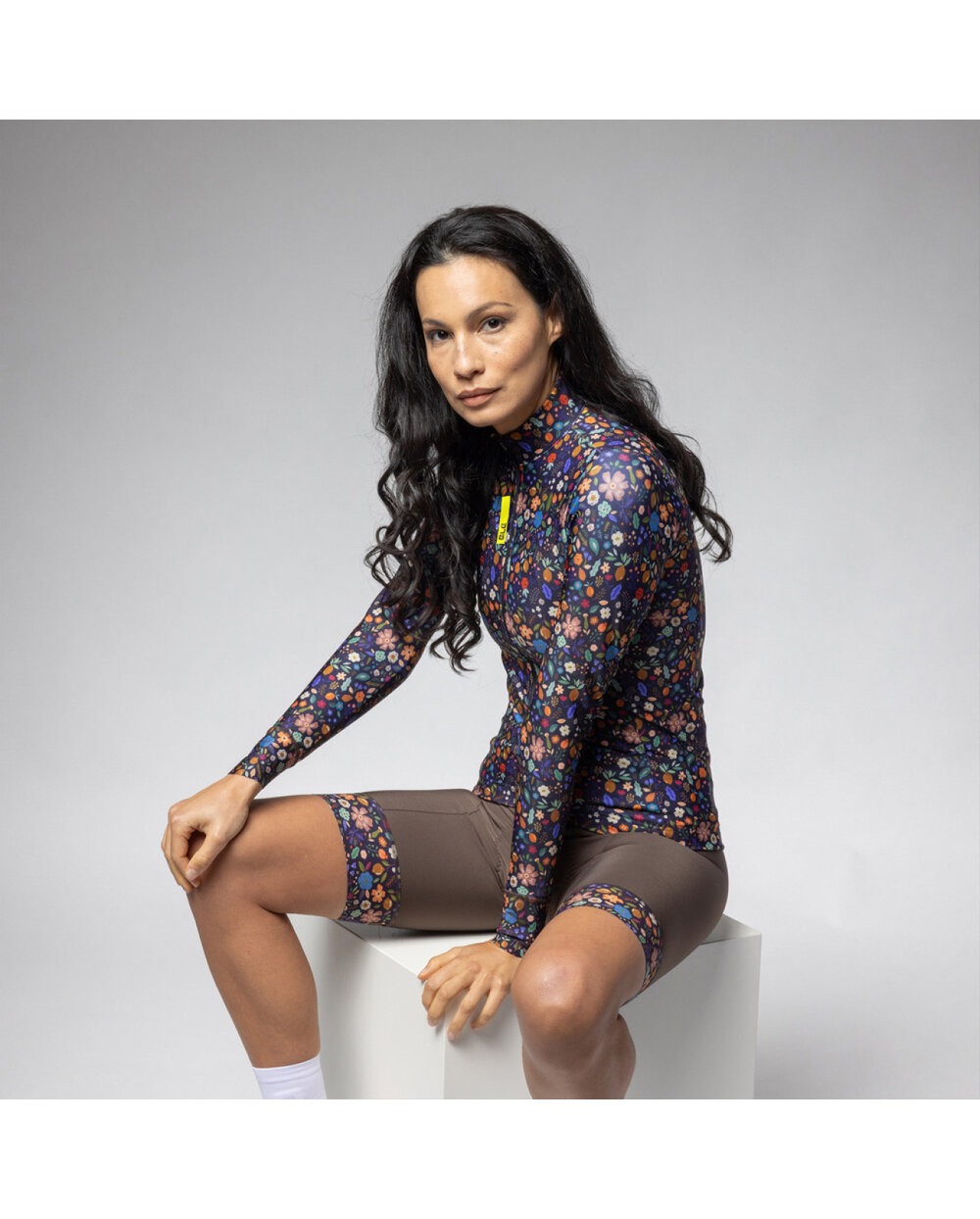 Flowers Lady is a women's jersey in an environmentally friendly version, made of recycled yarns certified by Global Recycle Standard (GRS). Low -impact materials ensure functionality, breathability and elasticity, so the jersey adapts perfectly to the body and supports the freedom of movement. Thanks to its design it is ideal for medium cold winter conditions - it effectively reduces heat loss and helps maintain stable body temperature throughout the driving time. Fitting: Performance