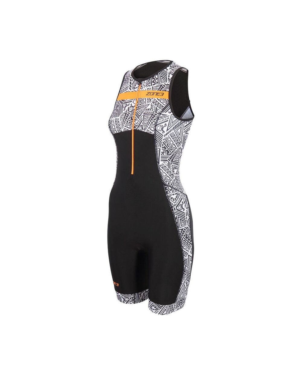 Women's Zone3 Activate+ Kona Speed Sleeveless Trisuit in a modern black and white design with orange details is a versatile and performance-tuned suit designed for triathletes who want maximum freedom of movement and breathability during every discipline. This model combines an elegant sporty look with the top functionality of materials that effectively wick away sweat and dry quickly, which you will appreciate especially during demanding training sessions and races in warmer weather.