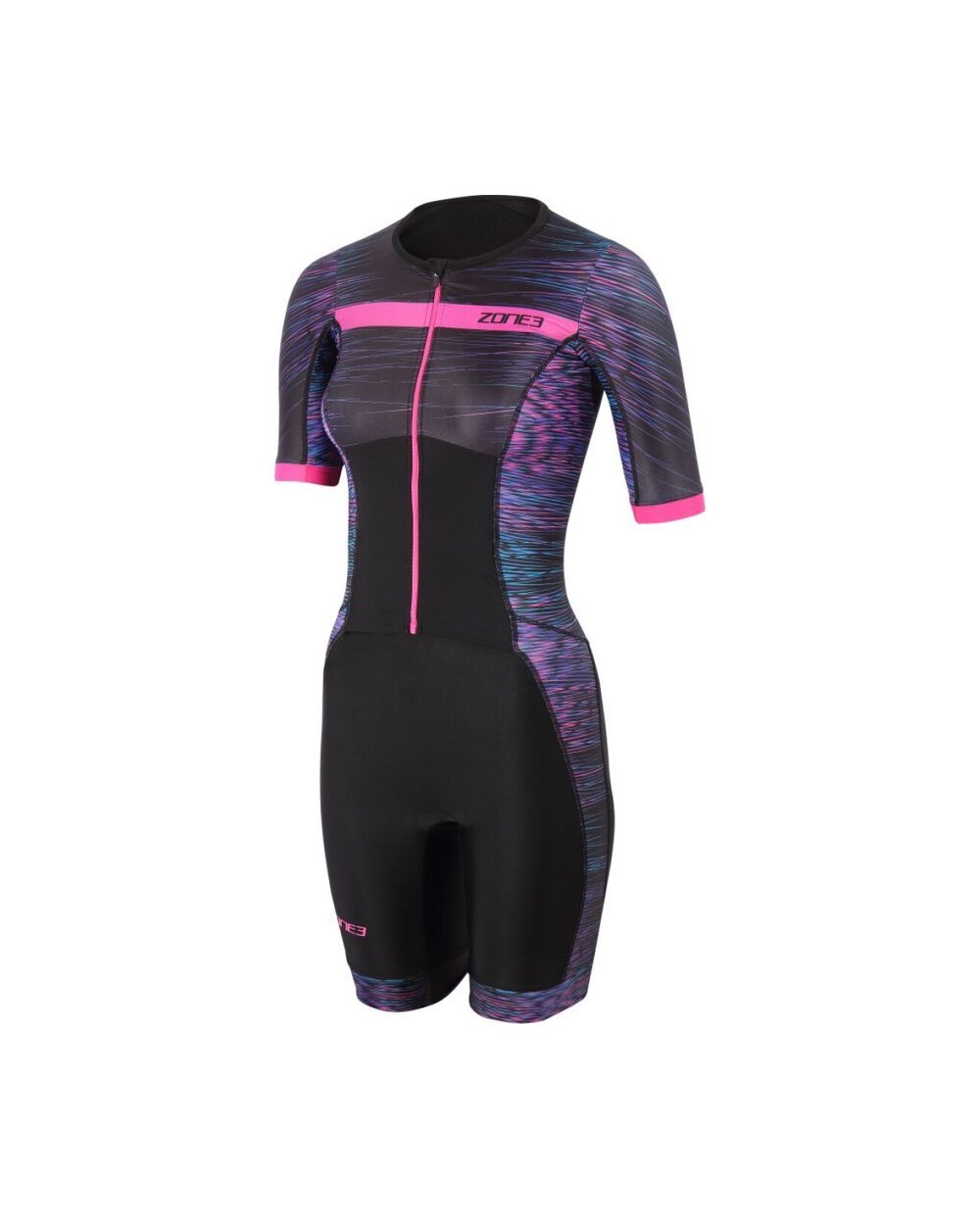 The Women's Zone3 Activate+ Momentum Short Sleeve Full Zip Trisuit is a versatile triathlon suit designed to give you reliable performance, comfort and modern style during training and racing. This model belongs to the Activate+ collection - an improved version of the popular Activate line, which combines high quality materials, technical features and a sporty design.