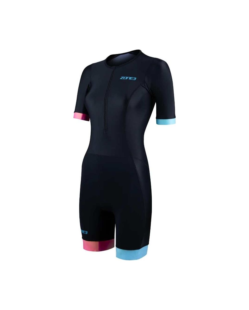 Women's Zone3 Activate+ Short Sleeve Trisuit is a performance-tuned triathlon suit that combines comfort, functionality and modern style for training and race days. This model represents an improved version of the popular Activate+ line with an emphasis on breathability, quick drying and optimal moisture management, thanks to which you keep a dry and comfortable feeling during every discipline. It is made from high-performance recycled materials that provide flexibility, durability and a great range of motion without restriction. The back part with a recycled mesh panel improves air flow and wicks sweat away, which you will appreciate especially during more demanding training sessions or in warmer weather. Thanks to the short sleeves, the model offers better coverage and aerodynamics without compromise. The Tri-suit is equipped with a thoughtfully placed Tri-Lite insert that provides comfort during the cycling part without restriction during running and swimming, and silicone grips on the legs that keep the pants firmly in place without unwanted movements. The elastic front zip allows for easy dressing and additional ventilation as needed, while the back elastic pocket provides practical storage space for energy gels or small items. Thanks to the combination of functional materials, ergonomic cut and technical details, this trisuit is the ideal choice for triathletes looking for an optimal balance between performance, comfort and sustainability.