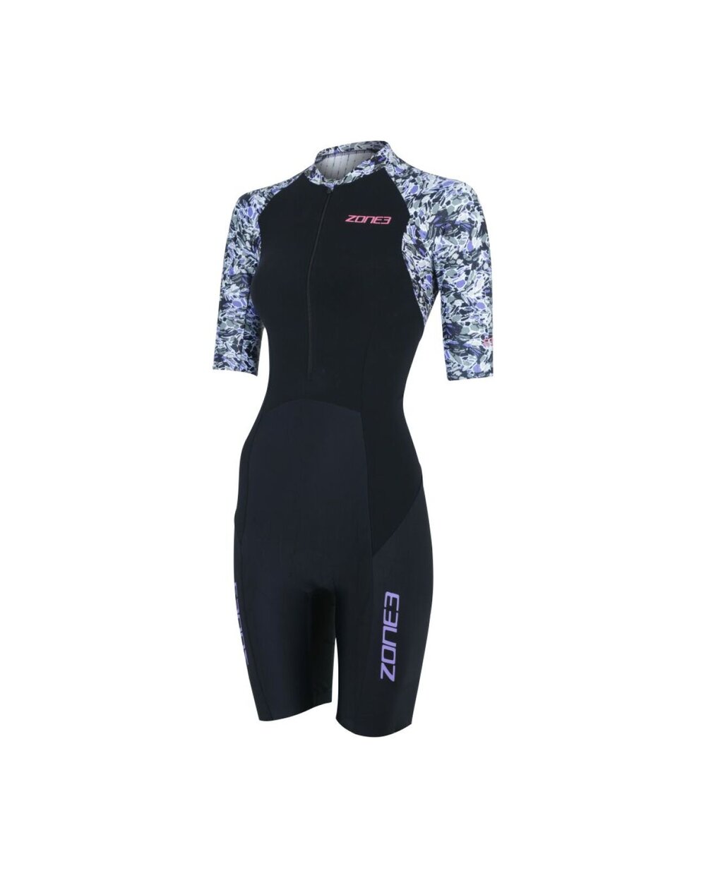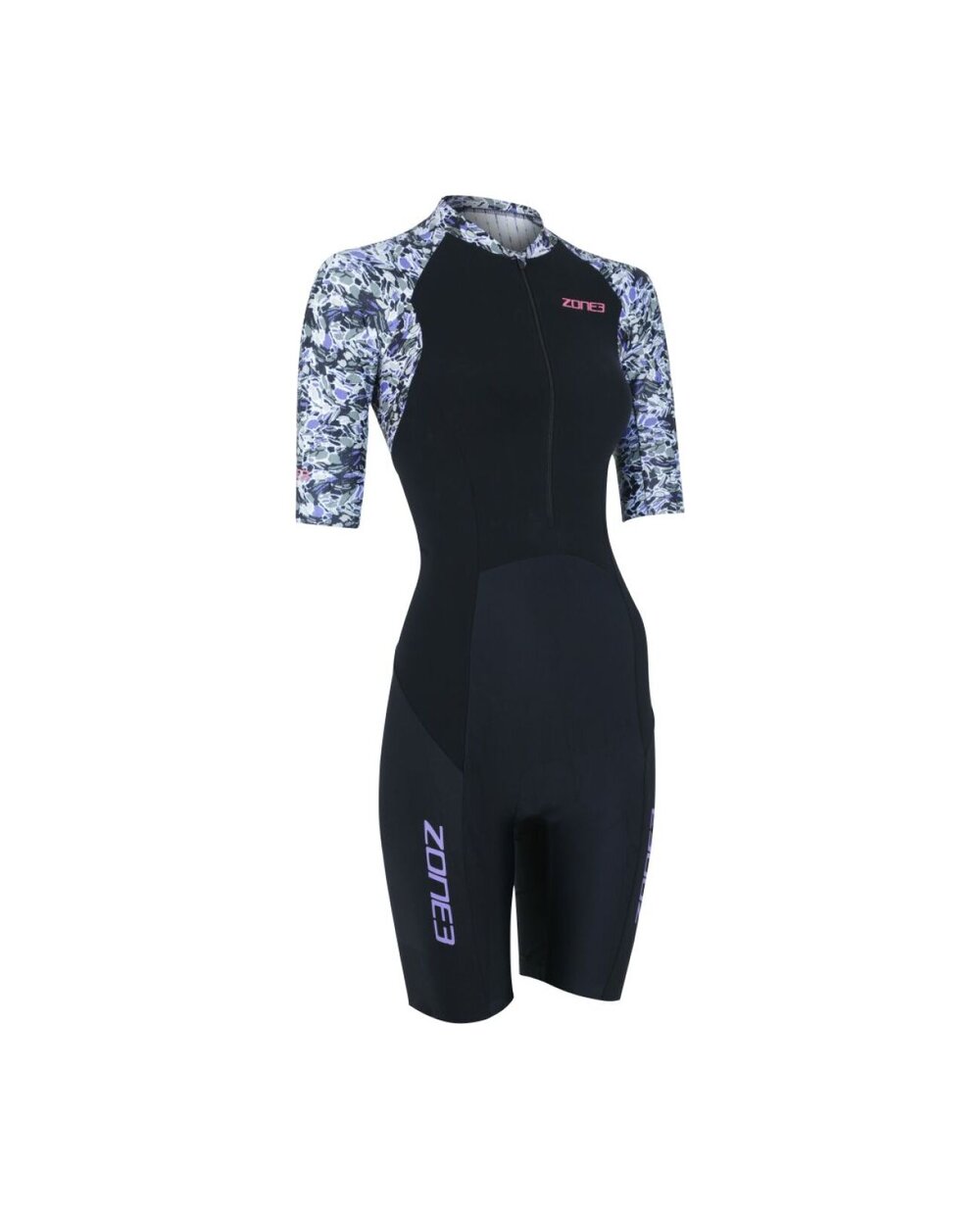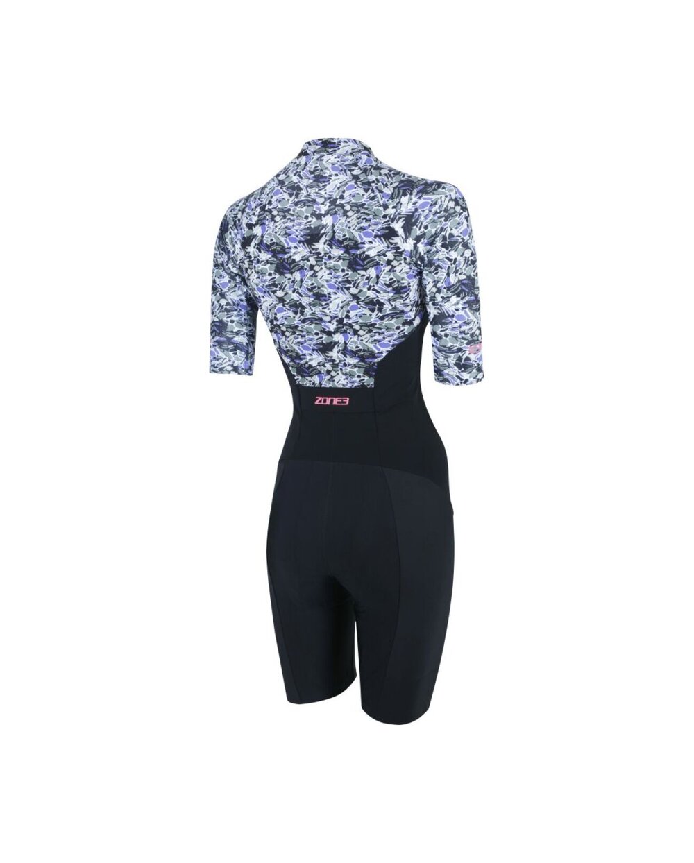 Zone3 Lava Short Sleeve Trisuit is a premium women's triathlon suit designed for demanding races and longer training sessions. This model comes from the award-winning Lava collection, which is the result of long-term development and testing in the wind tunnel and among professional athletes. The Lava trisuit combines advanced aerodynamic panels, water-repellent treatments and technical materials that together improve performance in all three disciplines - swimming, cycling and running.