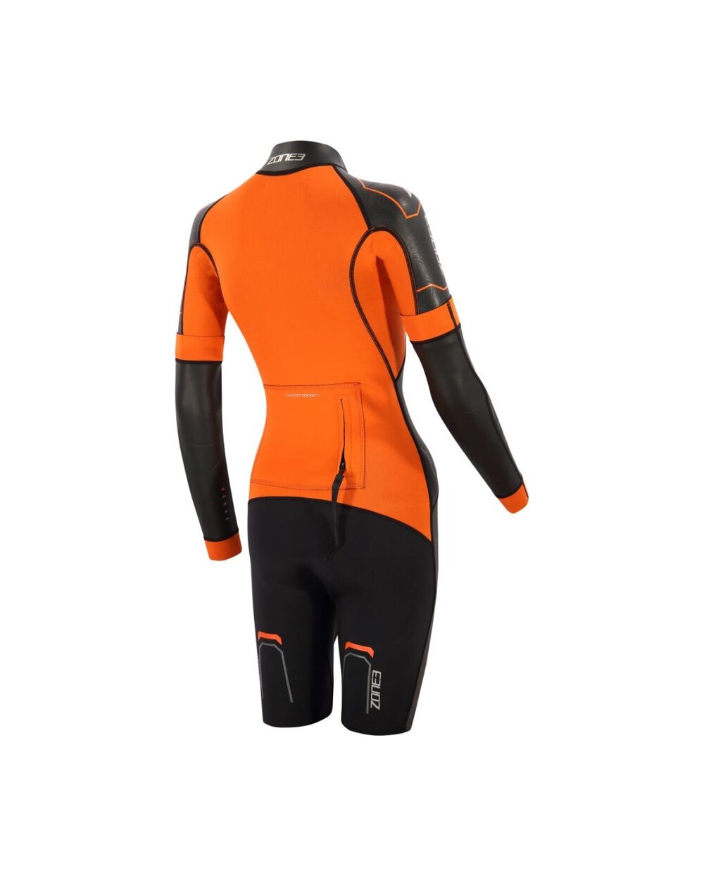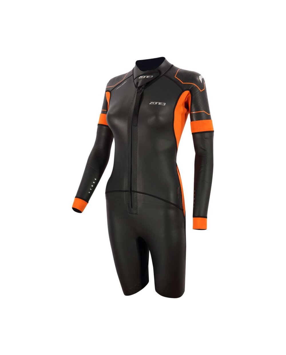 Zone3 Women's Versa Swimrun is a versatile women's wetsuit designed specifically for the swimrun discipline, where swimming and running alternate smoothly. The suit offers an ideal balance between flexibility, thermal comfort and durability, making it suitable for both beginners and advanced athletes. The combination of Yulex® natural rubber and Speedflo neoprene ensures good flexibility, a more ecological approach to production, and at the same time reduced water resistance for more efficient swimming. The front zipper allows for quick dressing and easy temperature regulation during running or transitions, which is key in swimrun. The shorter cut of the sleeves together with the possibility of supplementing them with removable panels makes it possible to adapt the suit to the current conditions. A practical element is the integrated pockets, which provide enough space to store energy gels or small mandatory equipment. Bold orange details increase visibility in open water and contribute to safety.