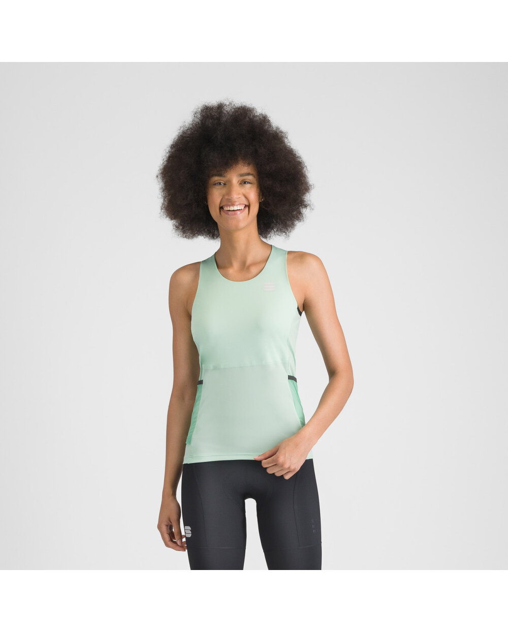 Women's cycling tank top with wide straps is ideal not only for long trips, but also for everyday riding in the summer. There is a double layer of functional material on the front, which ensures comfortable wearing without a bra and freedom of movement. The undershirt is equipped with up to five open pockets and a reflective element for better visibility. CHARACTERISTICS OF THE UNDERWEAR
