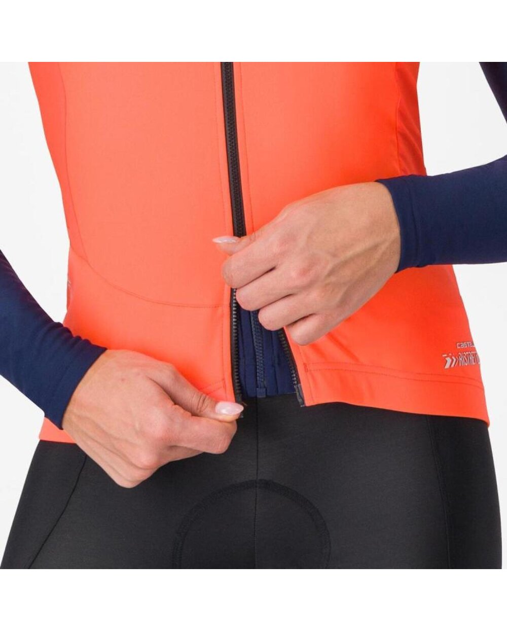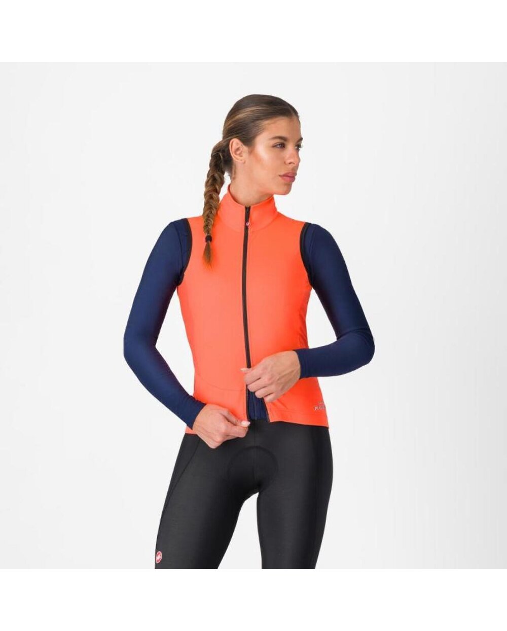 Mid-thick vest for cold temperatures provides moderate insulation with excellent breathability.CASTELLI Ristretto Lite fabric technology for unmatched breathability, warmth and dryness with a PFAS-free DWR treatment.Stretch woven back for flexibility with with excellent breathability. Easy-sliding YKK® Vislon® zipper with top and bottom opening. 3 pockets with internal security edge. Reflective piping at the bottom of the pocket for visibility. CASTELLI has teamed up with materials innovator ITTTAI® to create an exclusive fabric that combines advanced elasticity, breathability and water protection thanks to the expertise of ITTTAI® in the field of membranes and lamination.Sizes: XS-XLWeight: - gTemperature range: 10-15°CFit: body-weightWater resistance: wet roadsWind resistance: Front and backColors: 085 light black, 288 bright pink, 502 night shadows